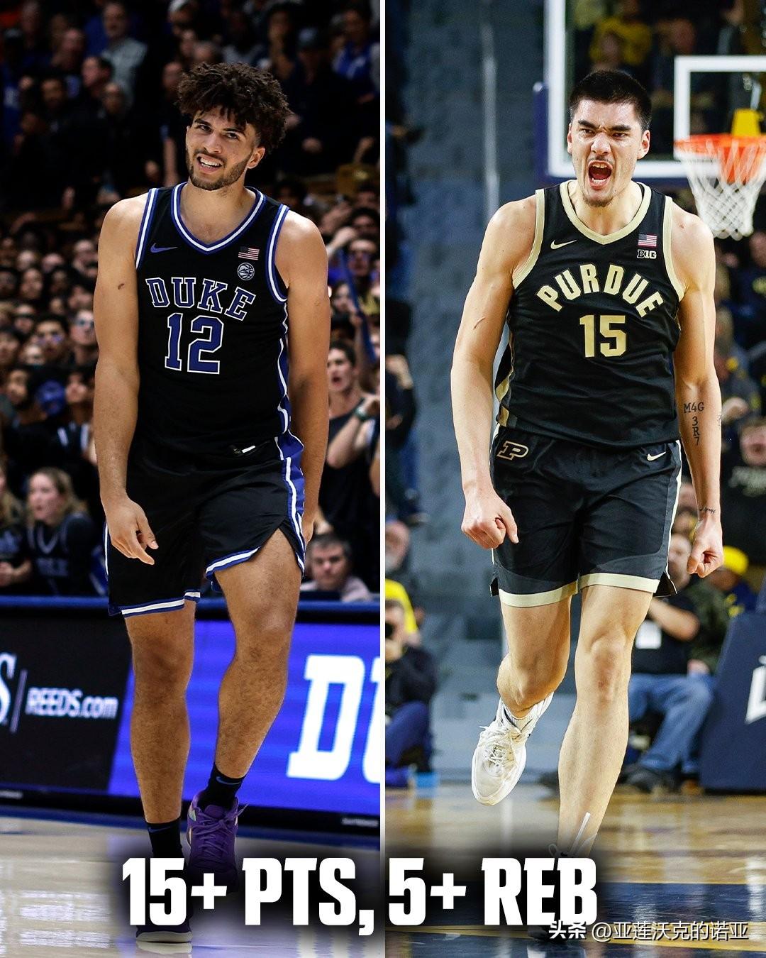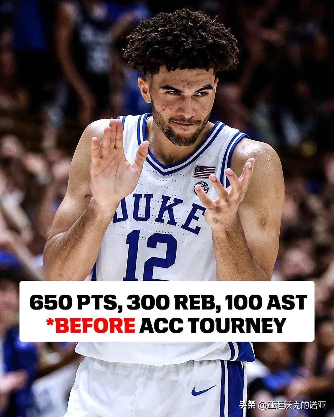 杜克主帅Jon Scheyer拿到第117场胜利,与巴特勒Brad Stevens并列为前四个赛季执教取得最多胜场数的D1教练,Cameron Boozer成为过去30年间首位在联盟锦标赛之前取得650分300篮板100助攻的D1新生,连续24场比赛15分+5篮板的数据与普度Zach Edey并列成为过去15年间D1球员最长记录。
