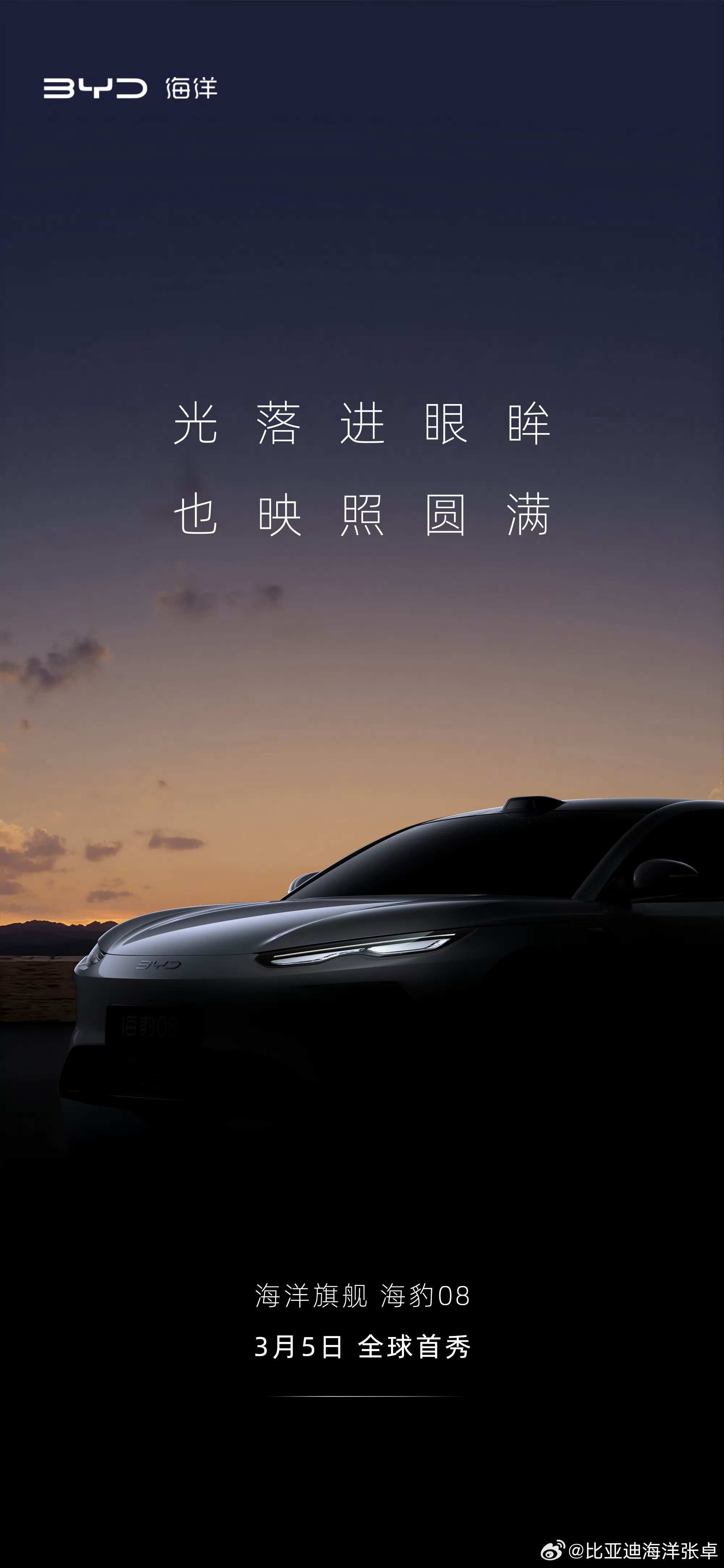眼中有光 身驭辽阔 心向浩瀚海洋旗舰轿车海豹08 3月5日,全球首秀与每一个强大