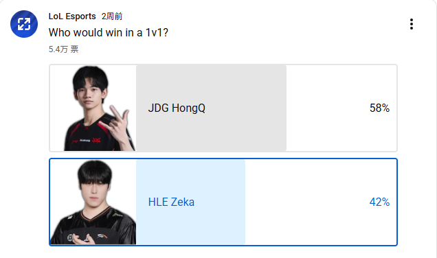 虎扑03月03日讯近日赛事官方发起“谁会赢得1v1”投票,截至目前已有5.4万份投票,投票分布如下: