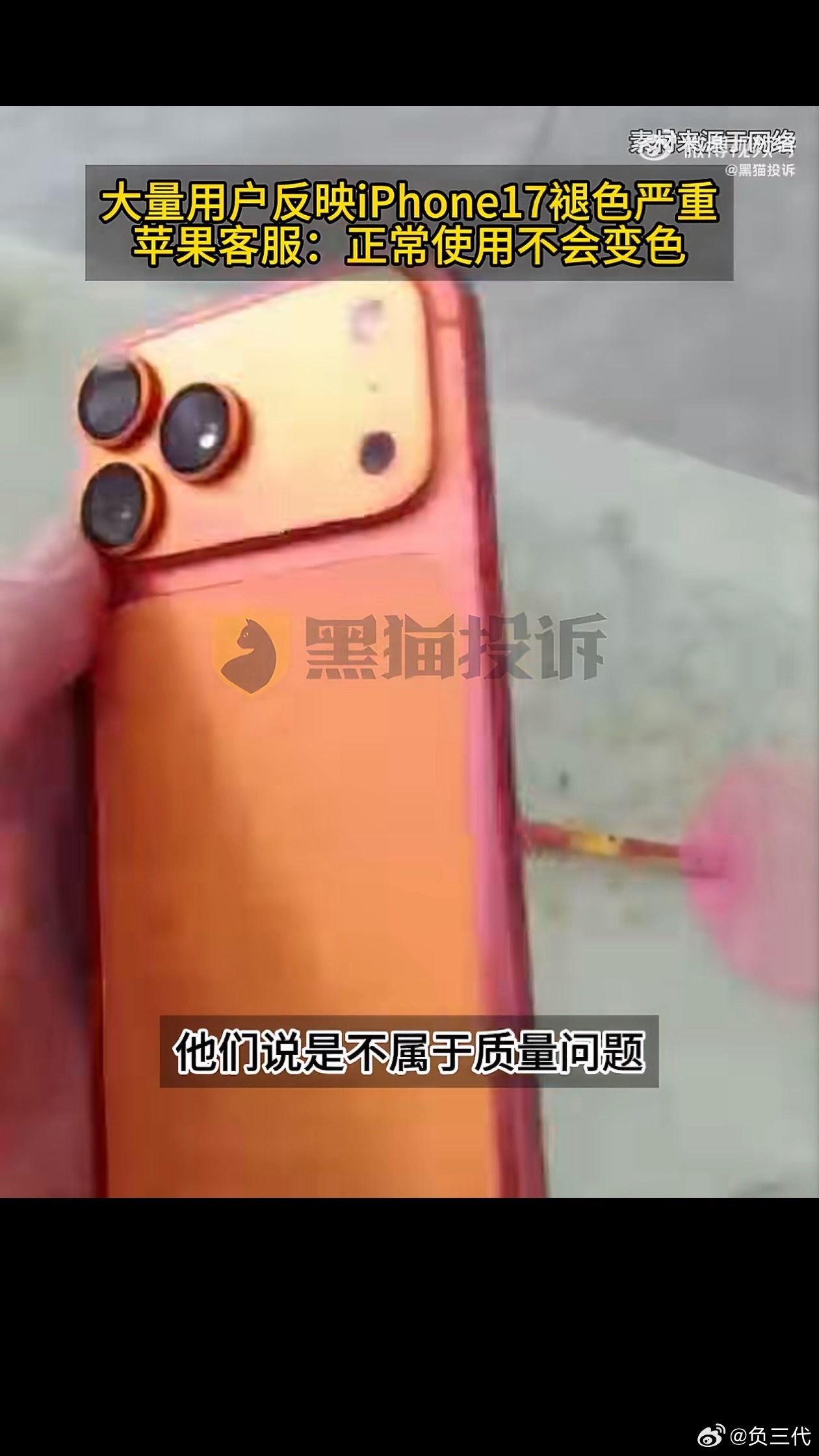 iPhone17只用一个月橙色变粉色周围买橙色的朋友挺多的,用好几个月都没出现这种情况。怀疑可能是特定情况下才会这样褪色,太夸张了