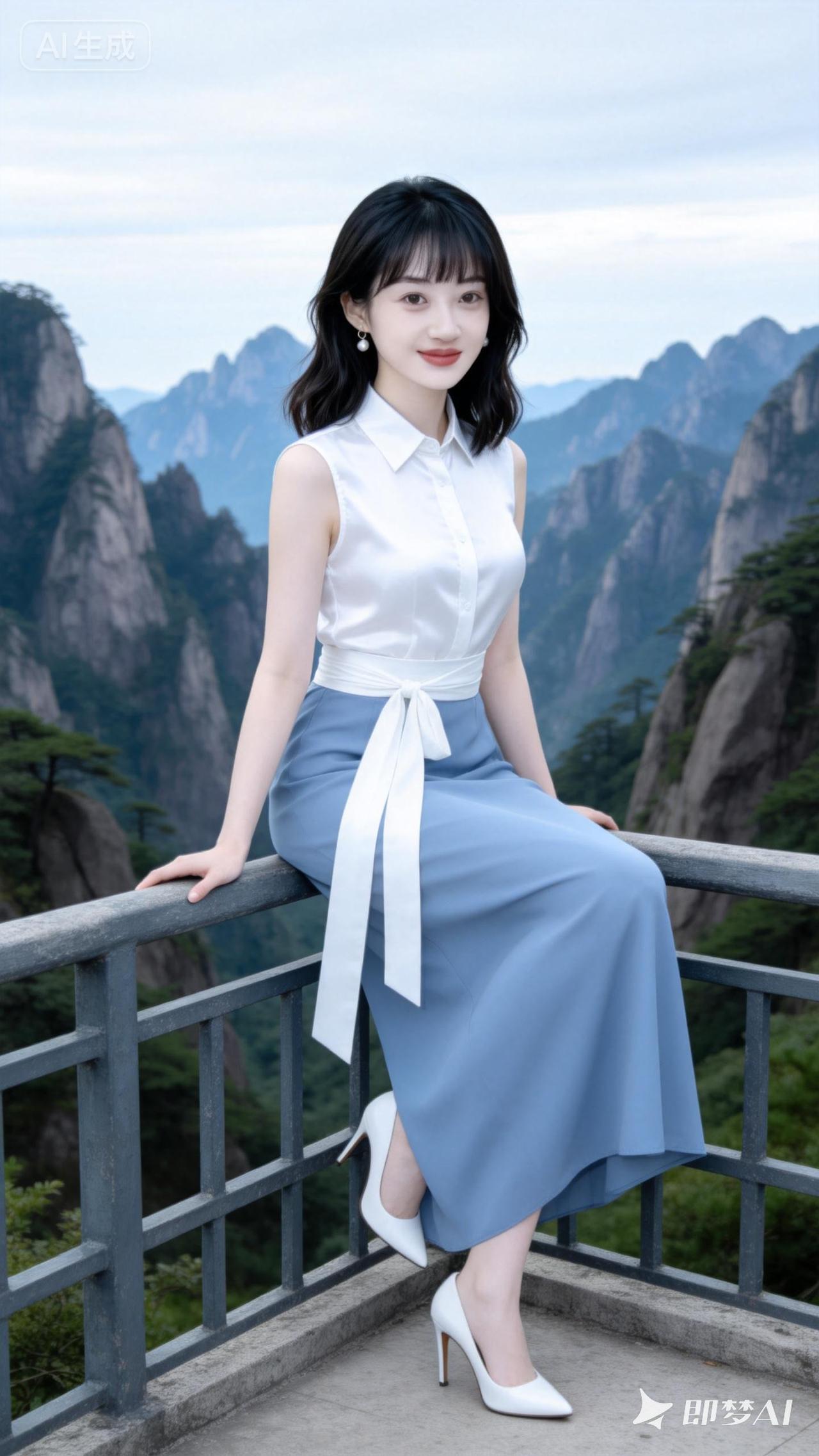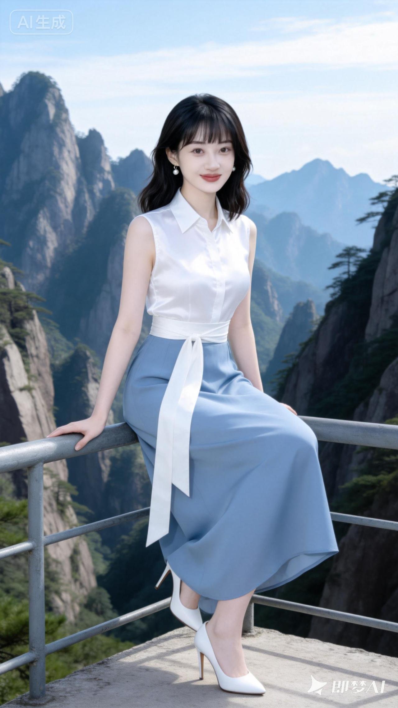 山间仙子,白裙飘飘,仙气十足