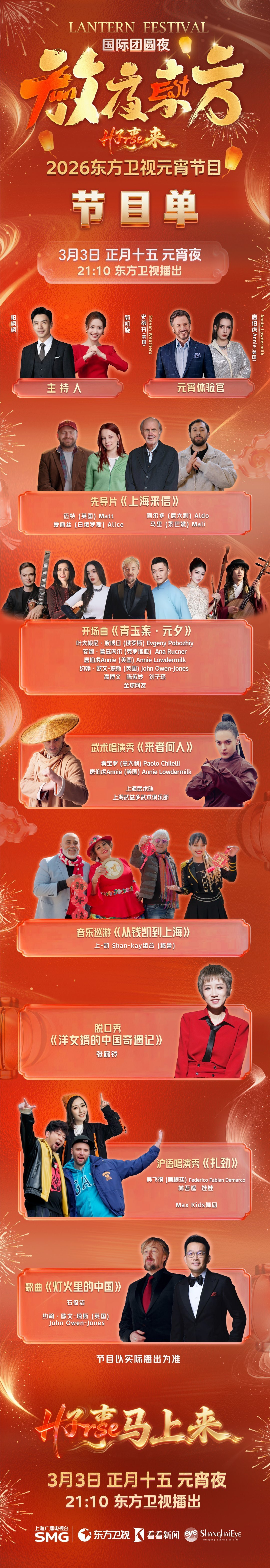 元宵晚会:我们的节日.元宵特别节目 江苏卫视 19:312026大湾区元宵晚会 广东卫视 19:31欢天喜地闹元宵 辽宁卫视 19:332026元宵奇妙游 河南卫视 19:35首播2026年福建非遗元宵晚会 东南卫视 19:352026内蒙古广播电视台元宵喜乐会 内蒙古卫视 19:35 2026央视元宵晚会 央视综合/综艺/中文国际频道/音乐频道 20:00 2026江苏卫视ai荔枝元宵晚会 江苏卫视 20:31放夜东方.好事来 东方卫视 21:102026安徽卫视元宵歌游会 安徽卫视 21:30首播