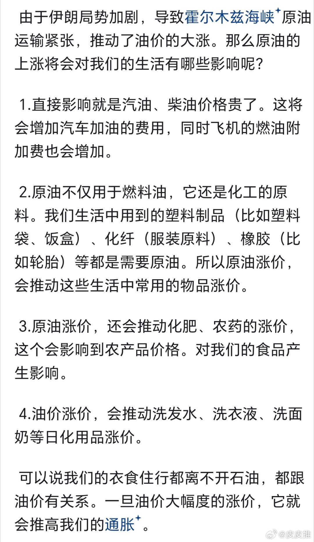 油价调整中东冲突局势加剧,霍尔木兹海峡已被关闭,油价大涨。那么油价上涨对我们的生