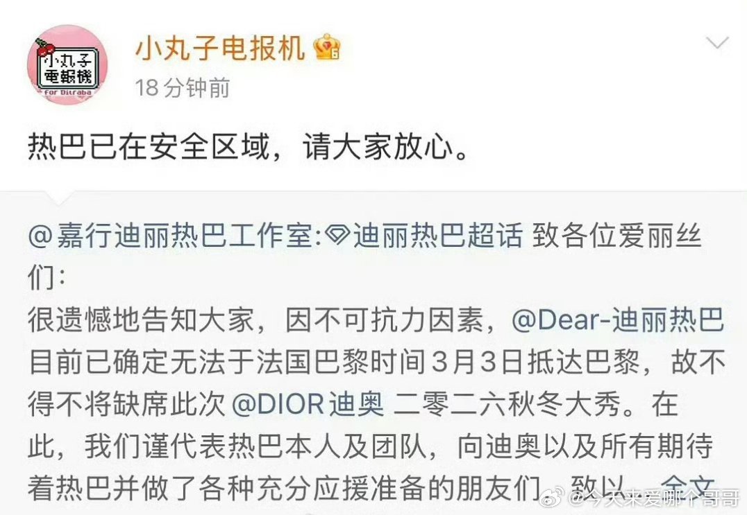 迪丽热巴对接说热巴已经离开中东,到达安全区域
