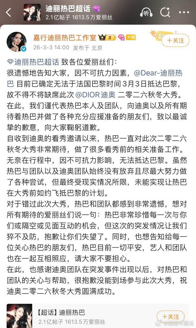 迪丽热巴 滞留迪拜公司原因给艺人造成重大人身安全隐患的,艺人是可以提出无偿解约,甚至还能向公司提出赔偿望周知