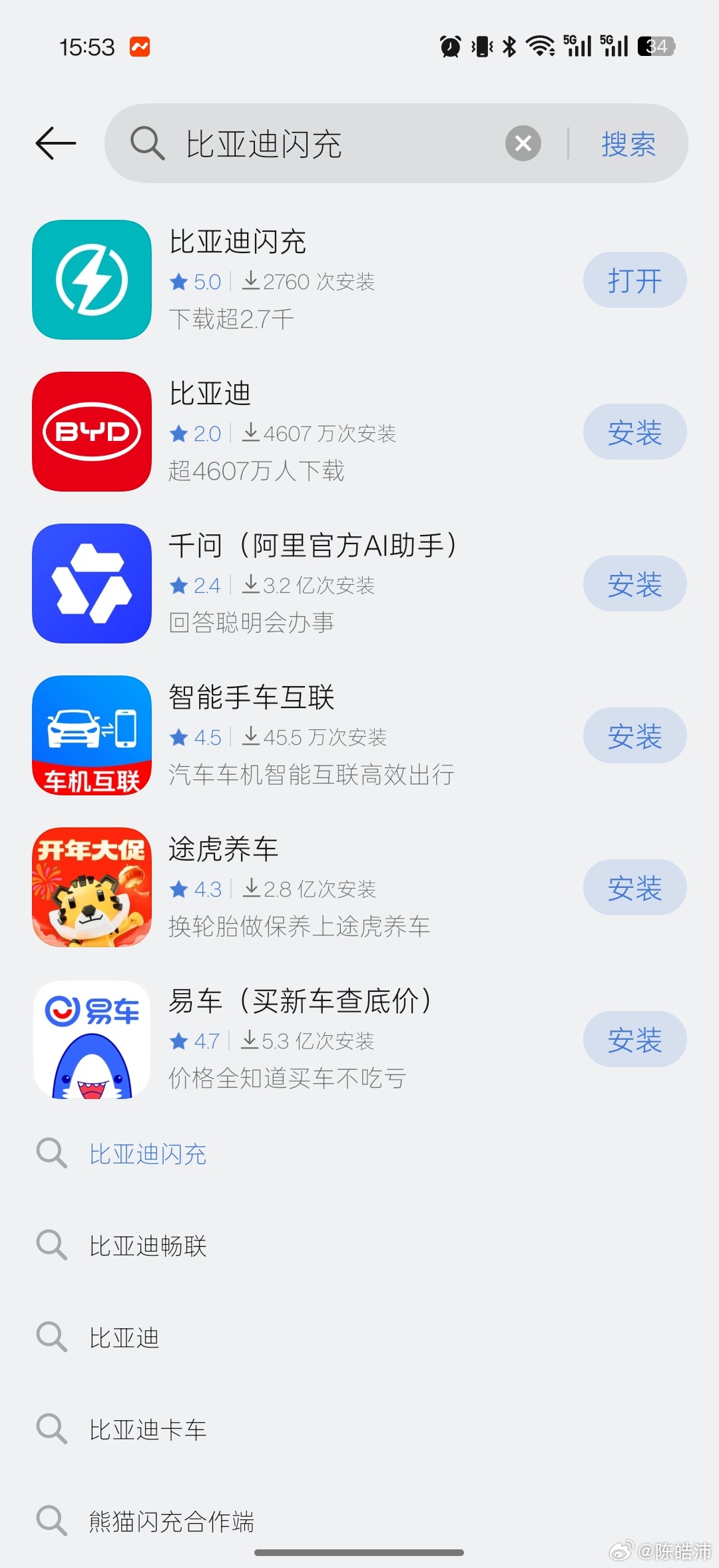 同事说他能装比亚迪闪充APP,我不相信,因为我的荣耀手机在荣耀市场里显示“暂不提