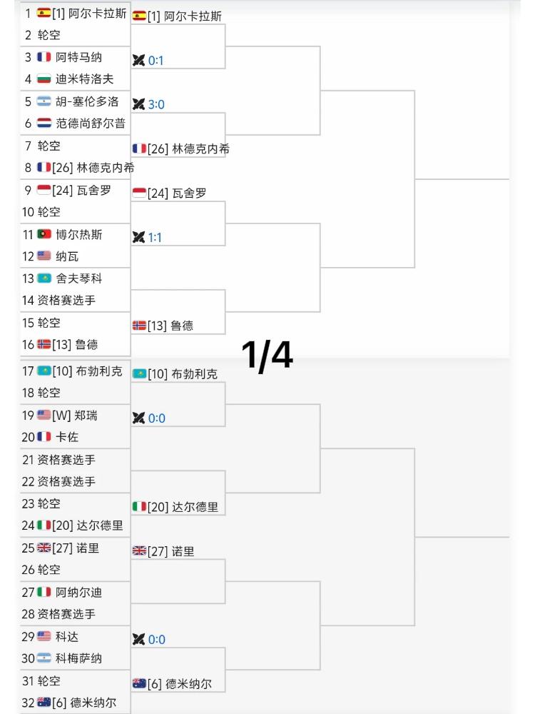 收藏🔥 阿尔卡拉斯:卡迷们出来咯!! 辛纳:辛迷们出来看比赛咯!! 印第安维尔斯1000赛男单签表来咯!! 估计第一个超郁闷的球员应该是谢尔顿吧,又是对位难求一胜的辛纳[我想静静]、第二个应该是兹维列夫,因为如果一切顺利,晋级半决赛就是他最好的成绩….八大种子选手中,大家觉得谁的签位是最佳的呢?阿尔卡拉斯 辛纳德约 兹维列夫