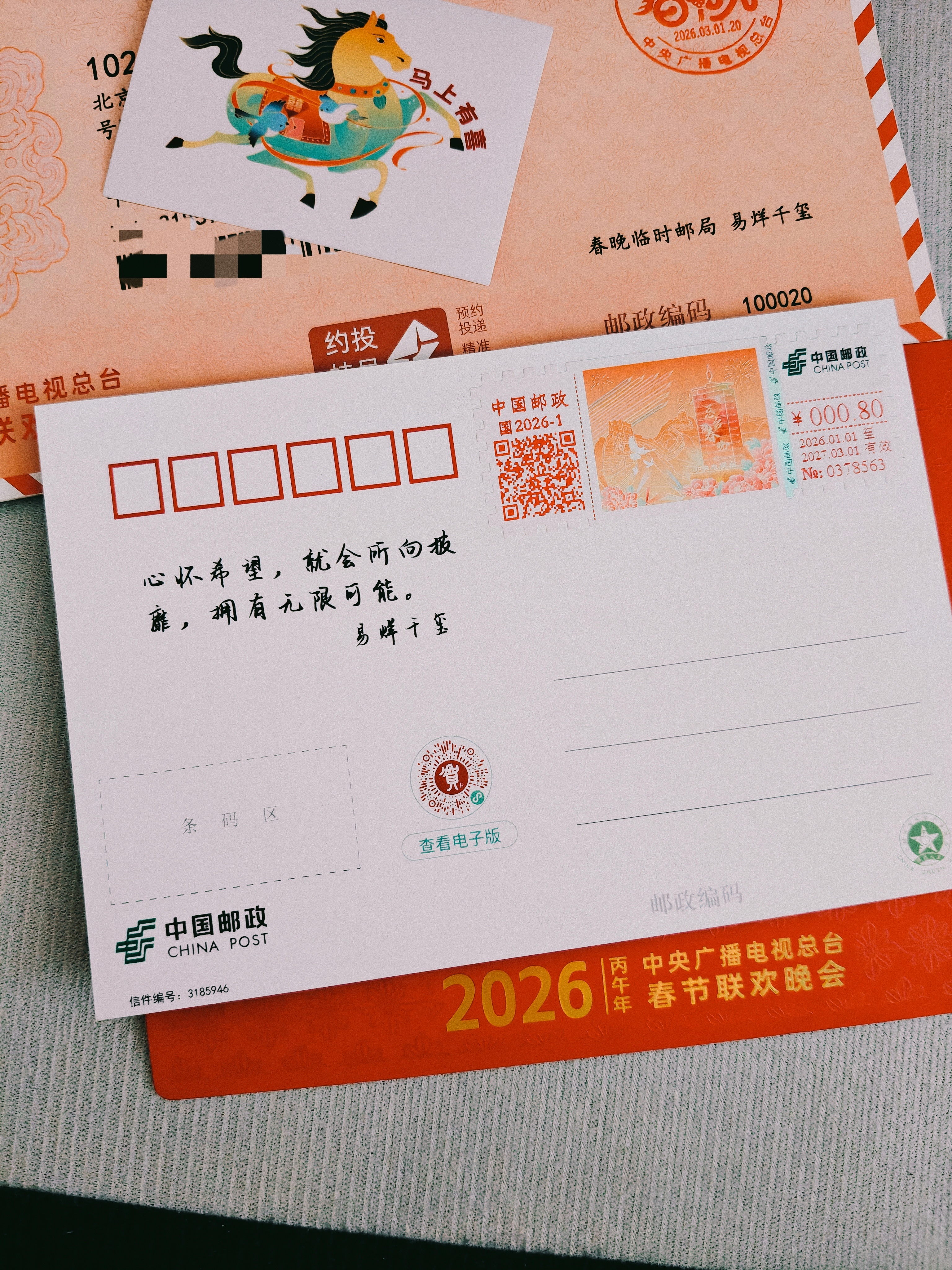 一年一度的春晚定制明信片贺卡收到了,日常的小乐趣自己就可以给自己。
