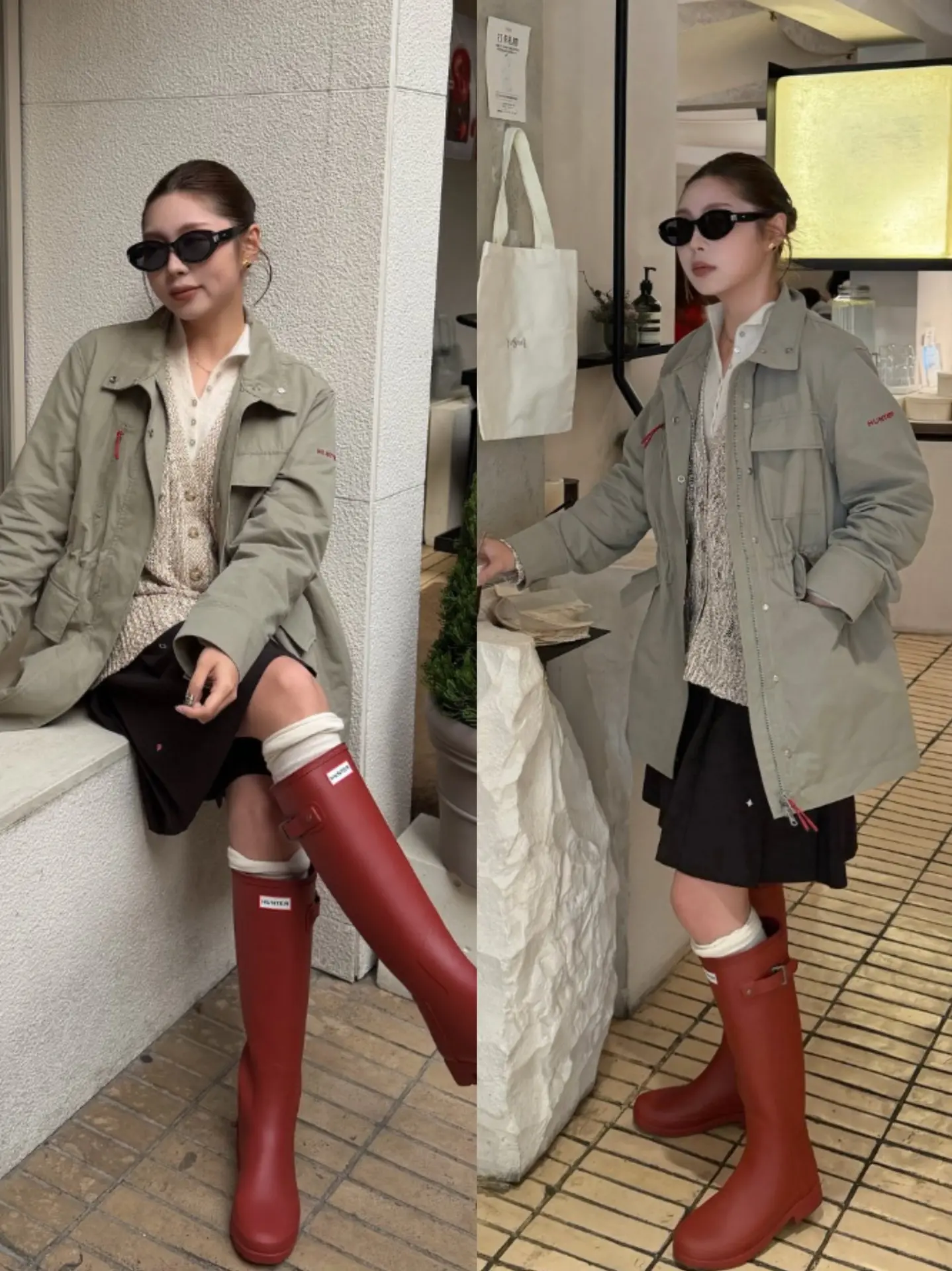 今日ootd时髦英伦风穿搭。今日ootd时髦英伦风穿搭 阴天也要出门玩 鼠尾草绿工装风衣搭配小红靴回头率满满 挺阔收腰的版型不挑身型 靴子线条流畅显腿长,防滑又耐磨 早春就该这么穿