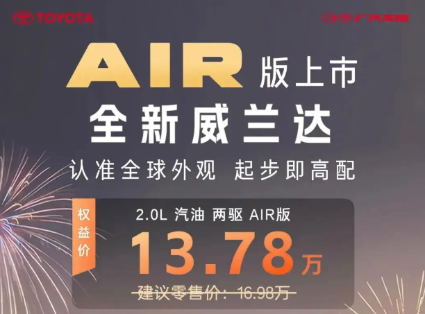 丰田方面,新款威兰达AIR版2.0L汽油AIR版综合权益后直降3.2万元低至13.78万元,2.0L混动AIR版权益价14.78万元,同时搭配8年低息金融方案降低购车门槛,这是该车型换代上市后的首次官方大幅让利;卡罗拉系列官方最高优惠4.1万元,入门版价格下探至8万元区间。