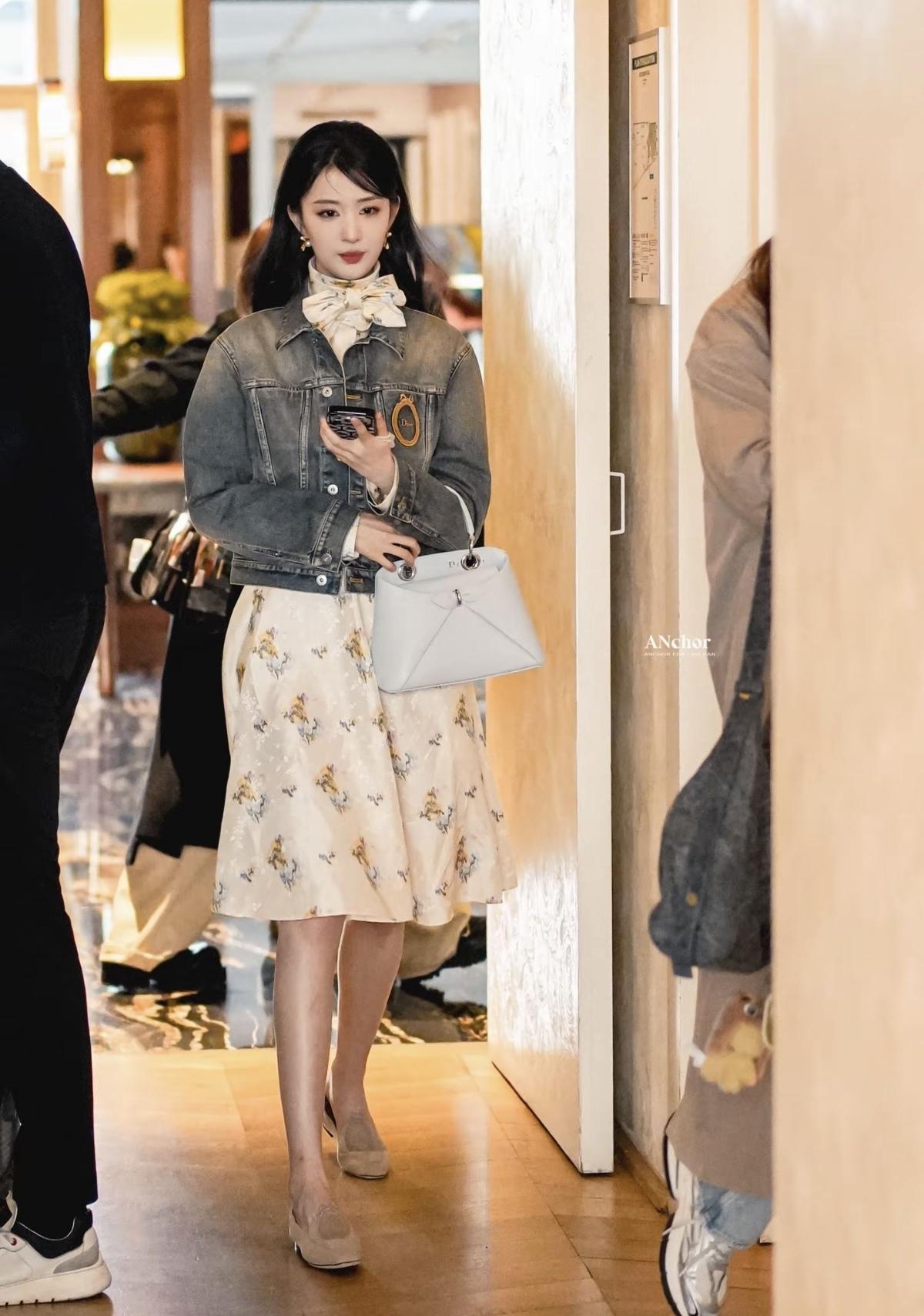 王楚然亮相巴黎时装周,做旧牛仔夹克碰撞柔美元素,利落中透着优雅,每一处细节都很有