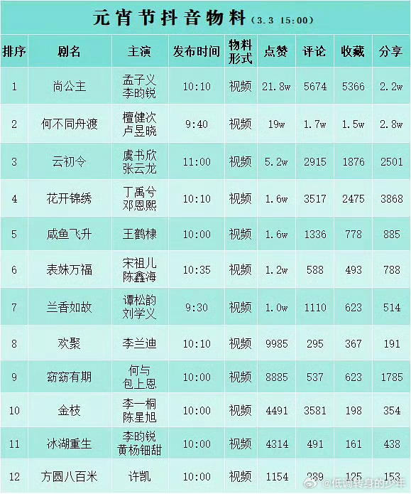 檀健次何不同舟渡今日元宵节物料薯和抖讨论度爆棚了,各个平台无短板,一骑绝尘 家主