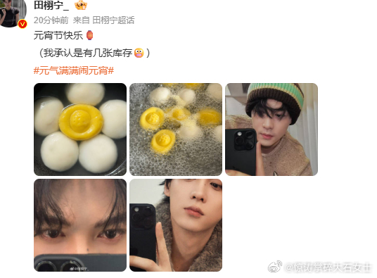 田栩宁让粉丝猜猜是啥馅田栩宁汤圆上的小字田栩宁带着汤圆来送元宵祝福,让粉丝猜猜汤圆啥馅,还老实说有几张图是之前的库存
