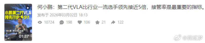 昨天何小鹏专访上的小视频火了,主要原因就是大师兄说了句:第二代VLA比行业一流选手领先接近5倍。有些人一听到这个,急了,受不了了,开骂了。问题是前面大师兄也有一句“通过内部的比较策略”,后面还给出了相关的标准......