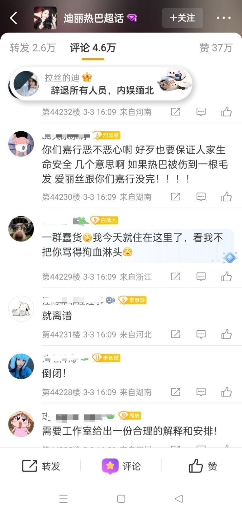 迪丽热巴团队的能力工作室的评论区粉丝全在骂,这件事跟热巴没有关系吗?热巴没有一点