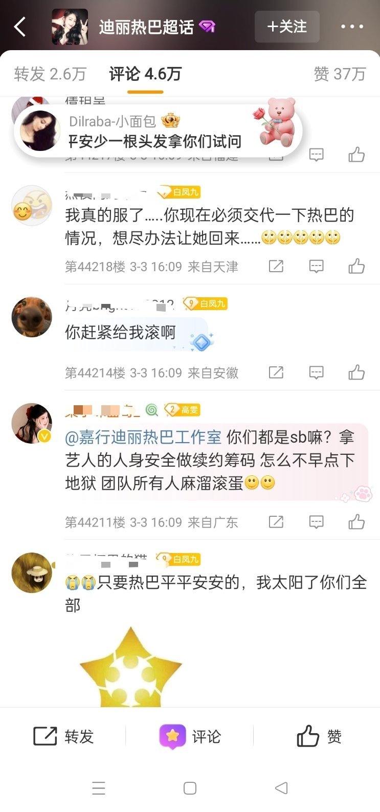 迪丽热巴团队的能力工作室的评论区粉丝全在骂,这件事跟热巴没有关系吗?热巴没有一点责任吗?她不是个孩子呀,不知道国外战火吗,人命关天的事儿,傻到不会拒绝?