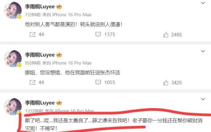 薛之谦前女友李雨桐突然发文控告薛之谦重婚,网友焦急等待薛之谦会不会回应,时隔一天终于等来了薛之谦的回应,但并不是他亲自发文,而是经纪公司发文否认了李雨桐对薛之谦所有的控告,并表示会启动法律程序维护薛之谦的利益。 李雨桐表示自己并不怕薛之谦告,还调侃薛之谦不敢自己发微博回应,言语之间满是自信,就好像她手里真的有薛之谦的把柄,不然不会如此肆无忌惮。 其实薛之谦不自己发微博是因为他不想和李雨桐一样在微博上跟泼妇骂街一样,他是公众人物,不能像李雨桐一样有啥说啥,用公司的账号发文会更郑重一点,并不是说他怕李雨桐了。 不过还是希望他能早日解决和李雨桐的恩怨,不然名字每天被挂在热搜上,受影响最大的还是他。