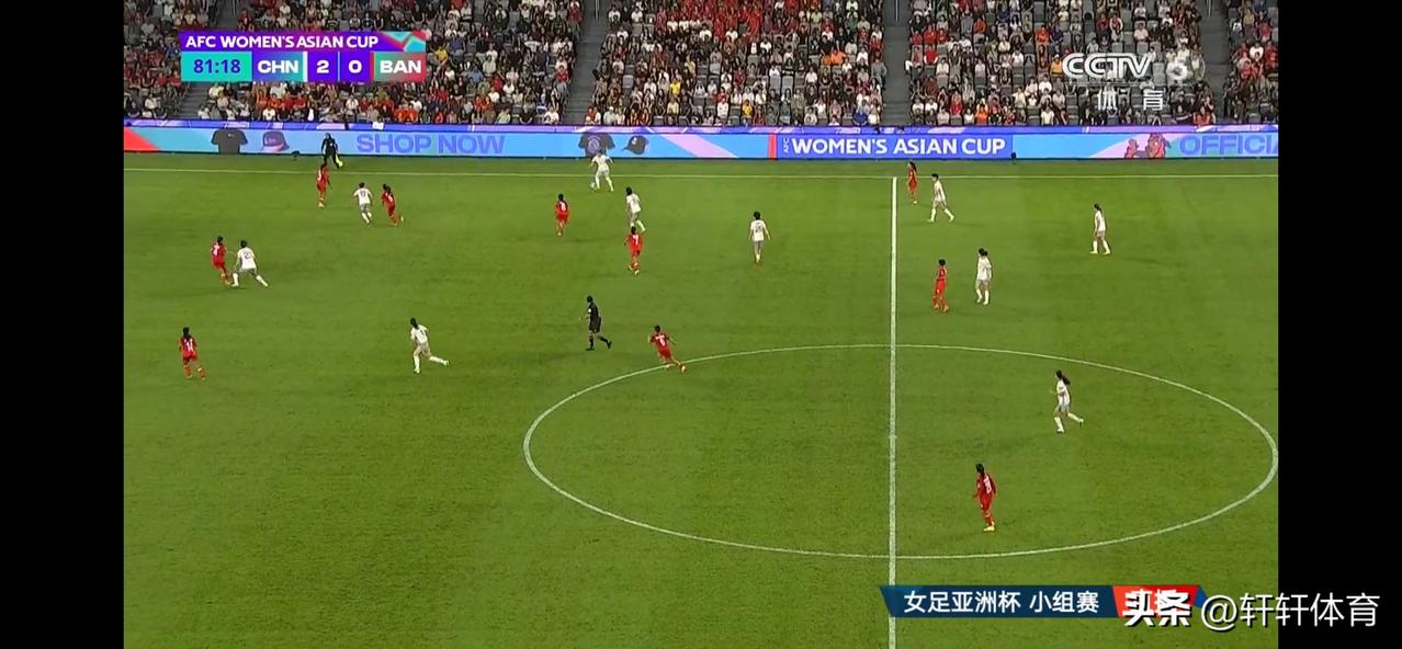 恭喜中国女足亚洲杯取得开门红,全场比赛结束中国女足以2-0战胜孟加拉女足,开场24分钟中国女足队员王霜,接队友传奇,门前抢点将球打进,但是裁判回放后王霜进球被判越位无效,比赛第44分钟王霜接张程雪传球再次打进一球,场上比分1-0中国女足领先,比赛第45分钟张睿一脚贴地斩将比分改写为2-0,随后双方互有攻势,中国女足将比分最终定格在2-0,下一场中国女足将对阵乌兹别克斯坦女足。