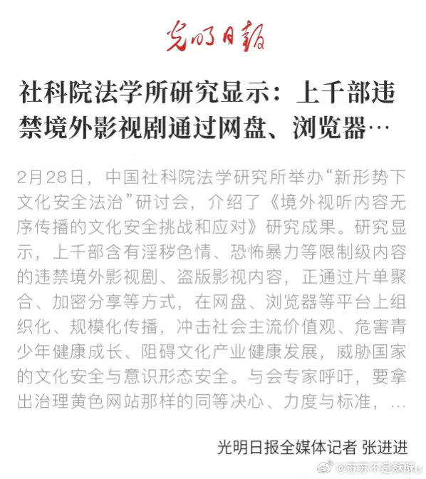 网盘成违规影视剧避风港网盘沦为盗版违规剧聚集地,侵权问题突出,暴力有害内容传播不止,抵制盗版、保护版权、净化网络刻不容缓。上千部违规境外剧在网盘唾手可得