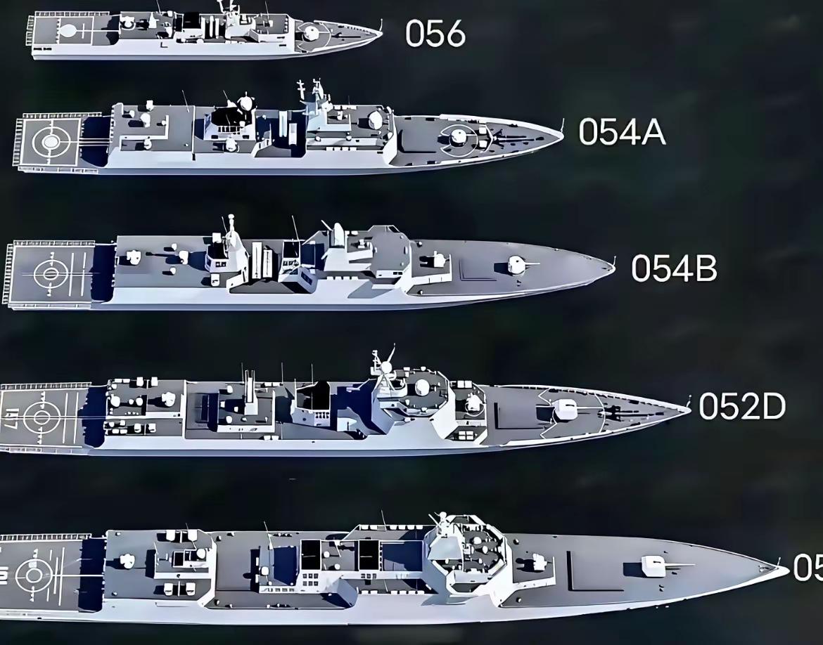 中国主力驱护舰对比图。 056导弹护卫舰主要负责近海防御。054A导弹护卫舰主要负责给编队提供反潜作战。 054B在054A基础上升级更为强大的反潜能力,可以为航母战斗群提供远洋反潜。 052D导弹驱逐舰作为目前中国服役数量最多的导弹驱逐舰,其拥有强大的防空,反潜能力,航母编队提供区域防空。055万吨大驱集所有能力于一身。可以单独行动,也可以为航母编队提供超远程的防空,反潜,反导,对陆攻击的综合能力。054a舰 054d护卫舰