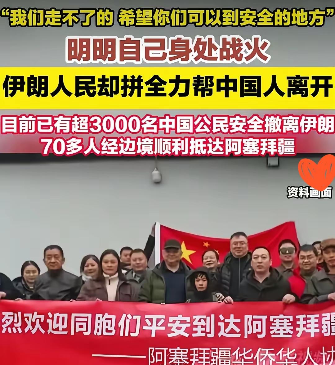 “我们现在是走不了了,希望你们能够抵达安全的地方”!伊朗人民的善良是刻在骨子里的,如今他们自己都深陷战火,却想方设法护送中国人安全离开! 在伊中国同胞撤离时遭遇轰炸、信号全无,陷入绝境。是当地百姓主动站出来,帮忙找车、规划路线,一路护送到边境。自己家园被毁、无处可去,却把生的希望优先给了我们,这份善意真的太戳心。 炮火之中见真情,伊朗民众用最朴素的行动,诠释了什么是跨越国界的友好。截至3月2日,超3000名中国同胞安全撤离,恰逢元宵,很多人已和家人团圆。 背后是祖国的强力护持,更是民间最纯粹的善意。灾难面前,善良最有力量,和平最是珍贵。 这样患难之中的真情,是不是最让人动容?
