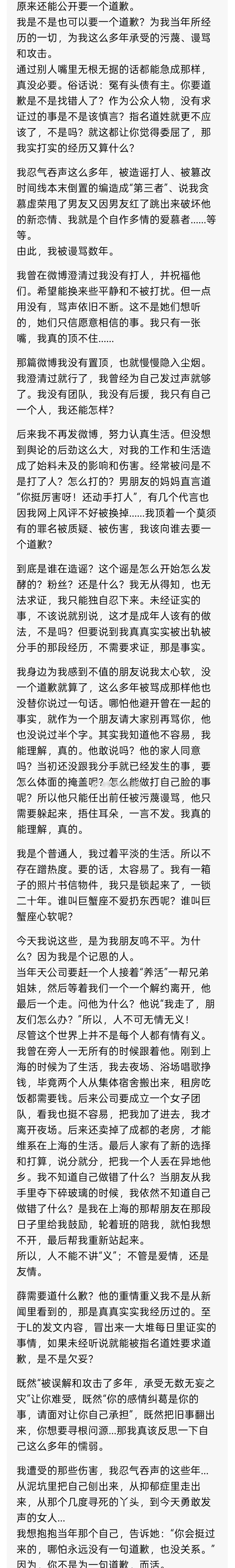 3️⃣自己被分手出轨那段经历是事实,薛之谦有情有义,他不需要对张杰谢娜道歉。