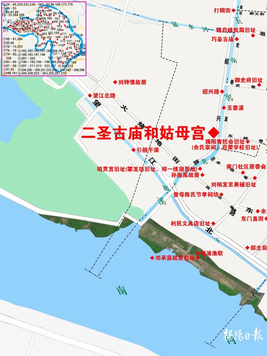 如今,随着揭阳古城保育活化的推进,二圣古庙的地理位置也被现代地标所定位,相信在不久的将来,修缮一新的二圣古庙将与周边的揭阳学宫、进贤门城楼、丁日昌旧居等文物保护单位串联起来,构成一幅展现揭阳历史文化名城风貌的画卷,迎接来自五湖四海的游客。