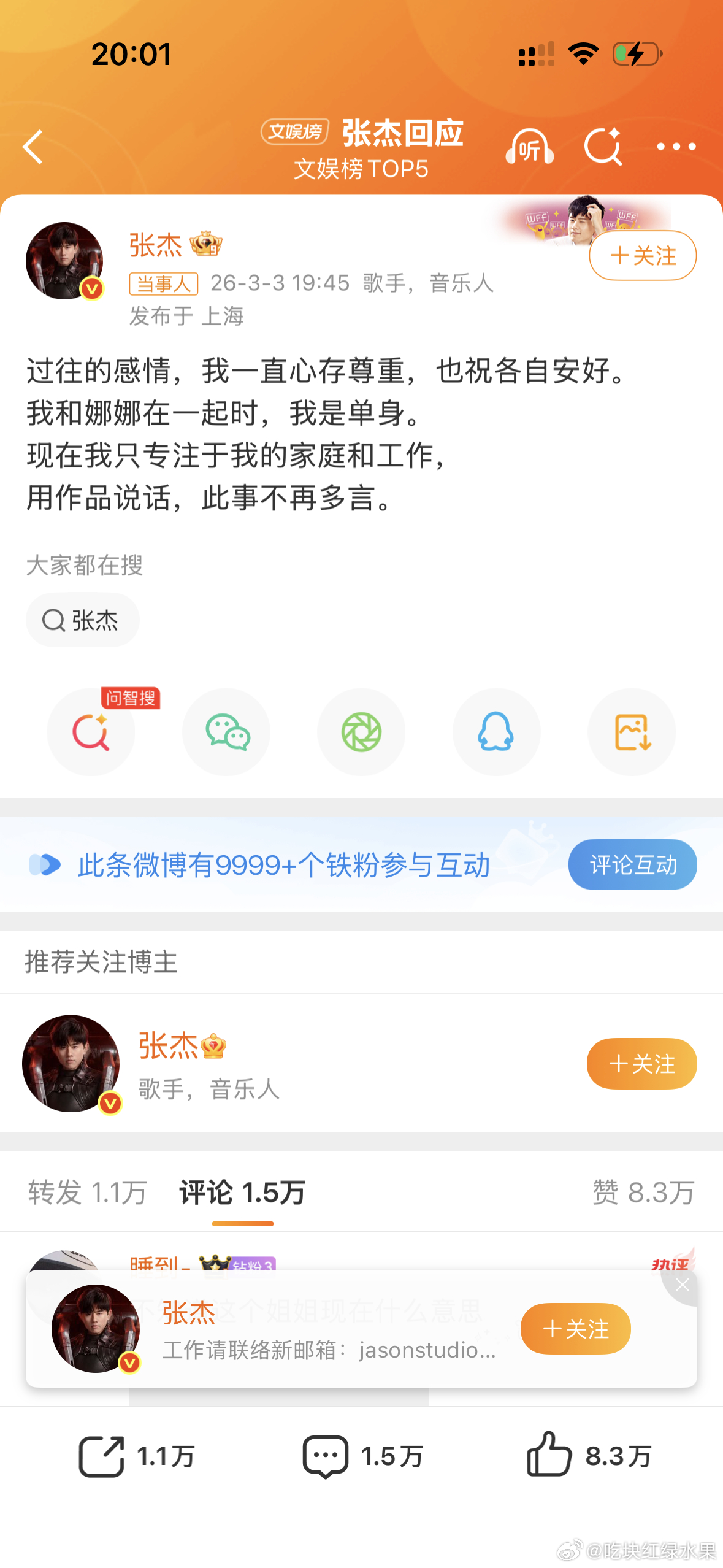 我去 张杰前女友和张杰都出来回应了 信息量好大张杰前女友 被出轨是事实张杰回应