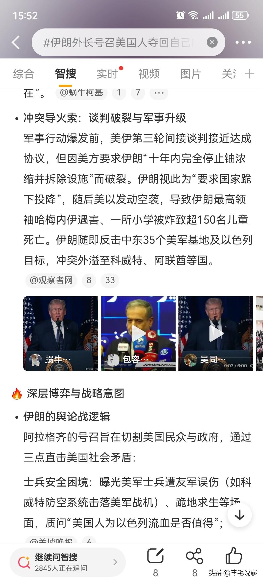 这应该就是传说中的以其人之道还治其人之身了。 近日美国特朗普号召伊朗人民推翻伊朗政府。 3月3日,伊朗外长喊话美国民众夺回自己的国家。 感觉伊朗外长学的挺快。 美国实在是太丧心病狂了,竟然把一所女子小学给炸了,100多个女学生因此丧命。