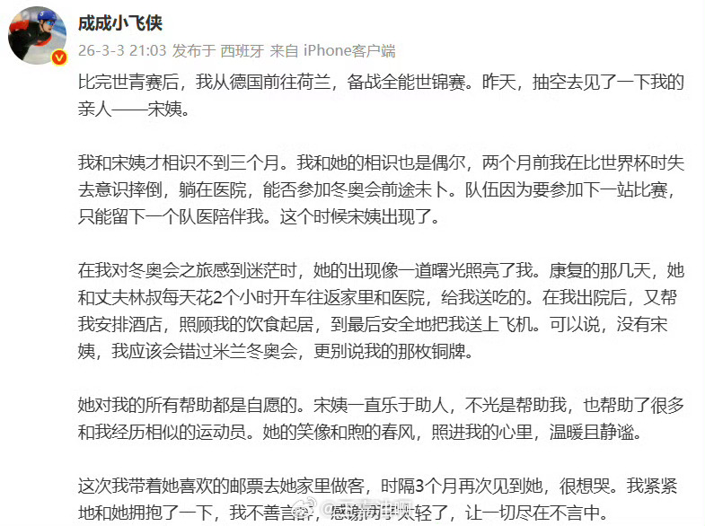 刘瀚彬发文感谢恩人不善言辞 唯有感恩未来 继续全力以赴