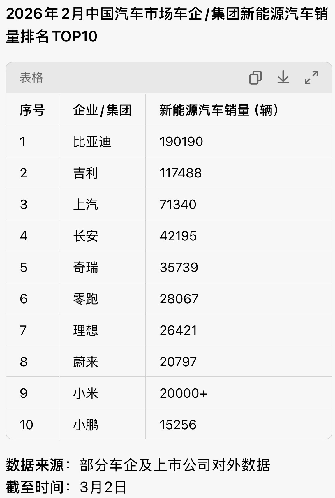 自2021年6月起,比亚迪已连续57个月稳居中国新能源汽车销量榜首。即便在销售淡季表现依然稳健。截至目前,比亚迪累计销量已突破1550万辆。随着全球化布局与产销规模持续扩大,比亚迪进一步巩固了行业领先地位。2026年2月,在整体消费节奏偏缓的背景下,比亚迪乘用车及皮卡海外销量达100151辆,同比增长41.4%;2026年1—2月累计海外销量200160辆,同比增幅达42.3%。欧洲、拉美、亚太等核心市场销量快速提升,成为比亚迪海外市场稳定增长的重要支撑。比亚迪旗下方程豹、腾势、仰望三大高端品牌,持续推动产品结构优化,提升品牌价值与市场影响力,2月高端品牌销量稳定增长至2.3万辆。依托规模、全球化与技术三重优势,比亚迪2026年开局稳健,行业领先优势进一步巩固。