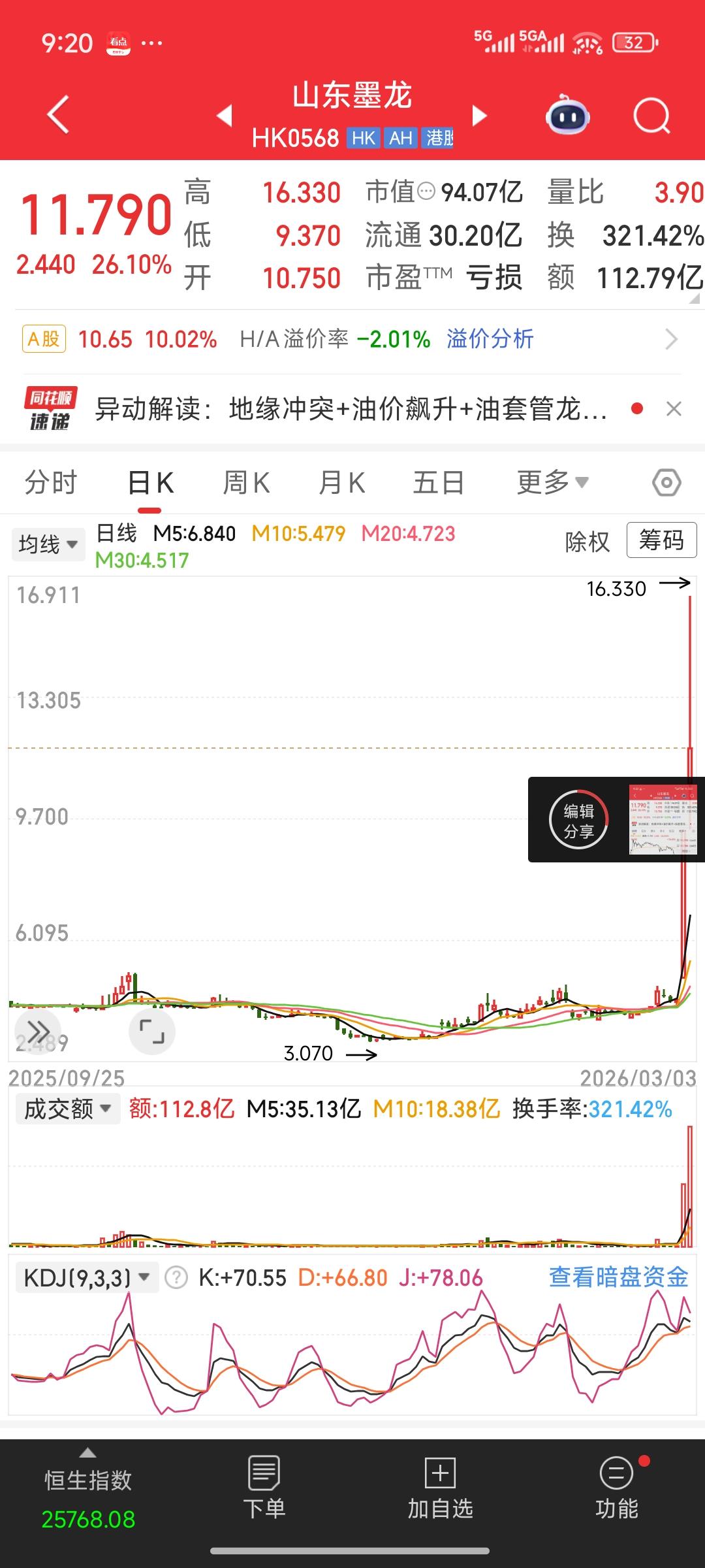 今日,港股中与伊朗、美国和以色列战争相关的油气概念股再度大幅上扬。结合昨日的涨势