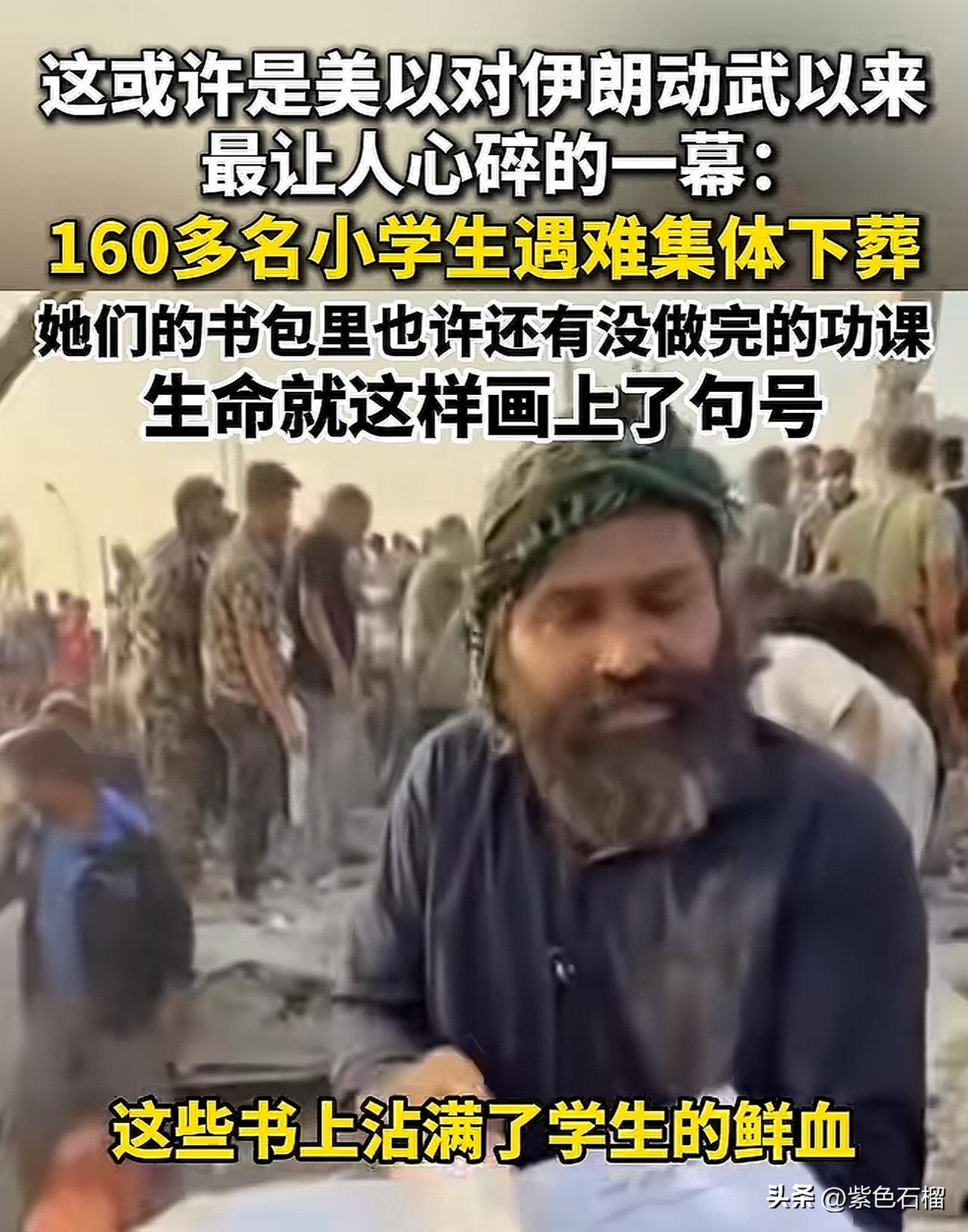 这个画面令人心碎! 他们不过是一群孩子啊, 他们像往常一样去学校, 却再也无法归来。 书包里装着未完成的作业, 一滴滴鲜血洒落在未读完的书本上。 160个稚气未脱的孩子, 化作160座并排的小小坟墓…… 他们有何过错, 160个无辜的生命瞬间成了冤魂。 孩子啊, 愿天堂没有战争, 愿天堂回荡朗朗书声。