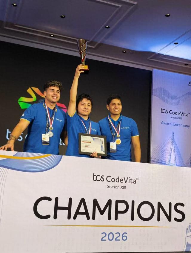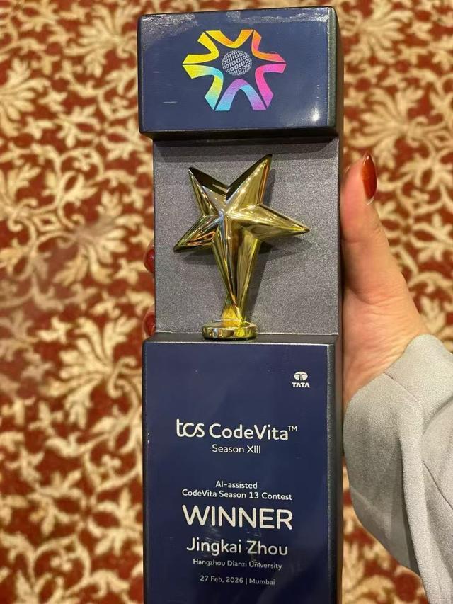 2月27日,在全球最大规模计算机编程竞赛TCSCodeVita第13届总决赛现场,杭州电子科技大学(杭电)卓越学院大三学生周靖凯,从146922名来自全球86个国家和地区的参赛者中脱颖而出,摘得2026年度全球总冠军桂冠,并获得1万元美元的奖金。这是中国选手在该项赛事历史上取得的最佳成绩,也是杭电学子继戴志炜同学获2024年全球亚军后,又一次站上TCSCodeVita最终领奖台。