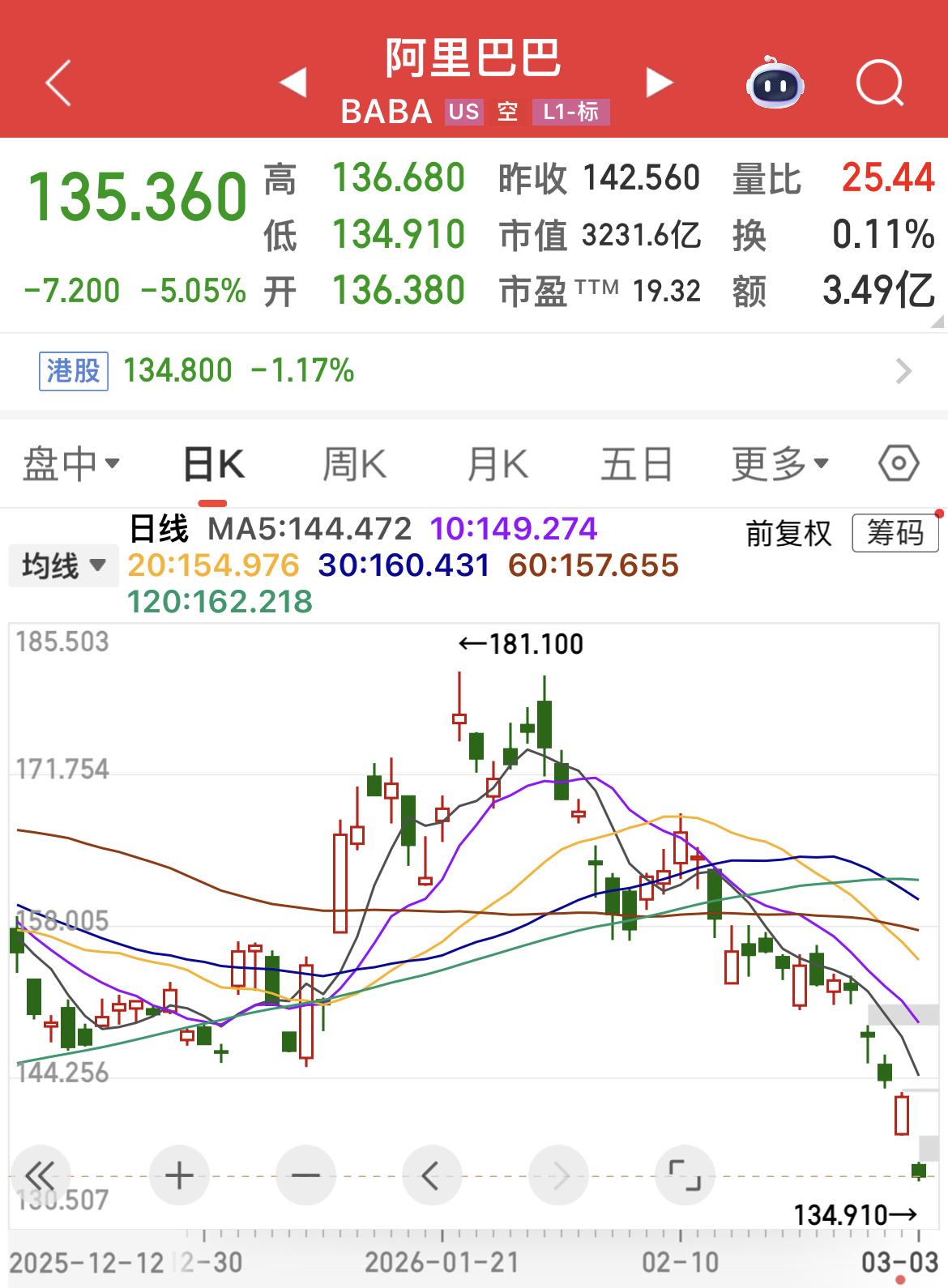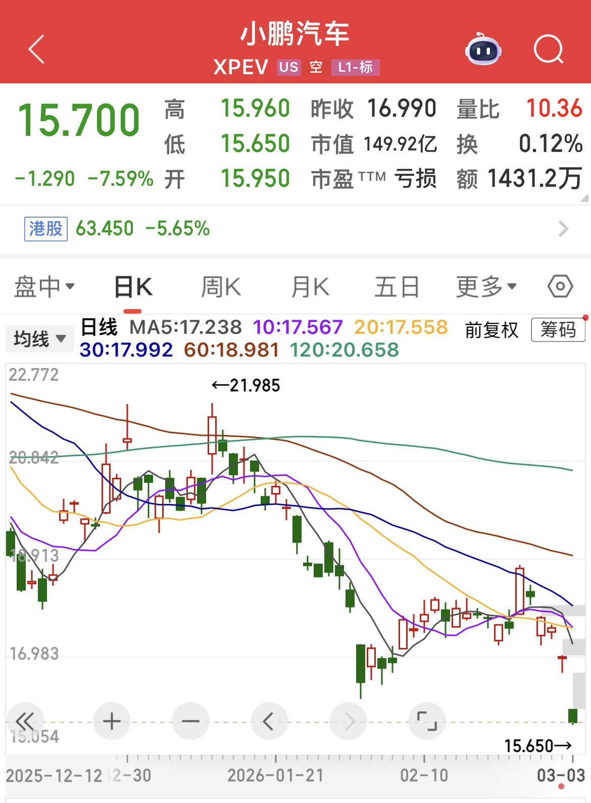 纳斯达克中国金龙指数下跌,超过3 %! 小鹏汽车下跌超7%! 阿里巴巴和蔚来均下跌超5%!