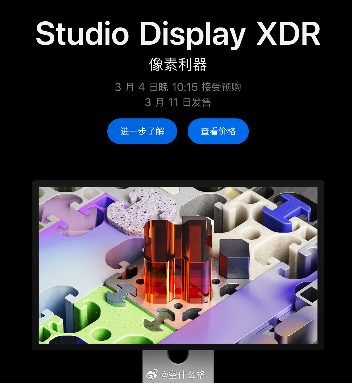 此外苹果还上架了全新 Studio Display (11999 元起)以及 Studio Display XDR( 24999 元起),都是 27 英寸 5K 分辨率。