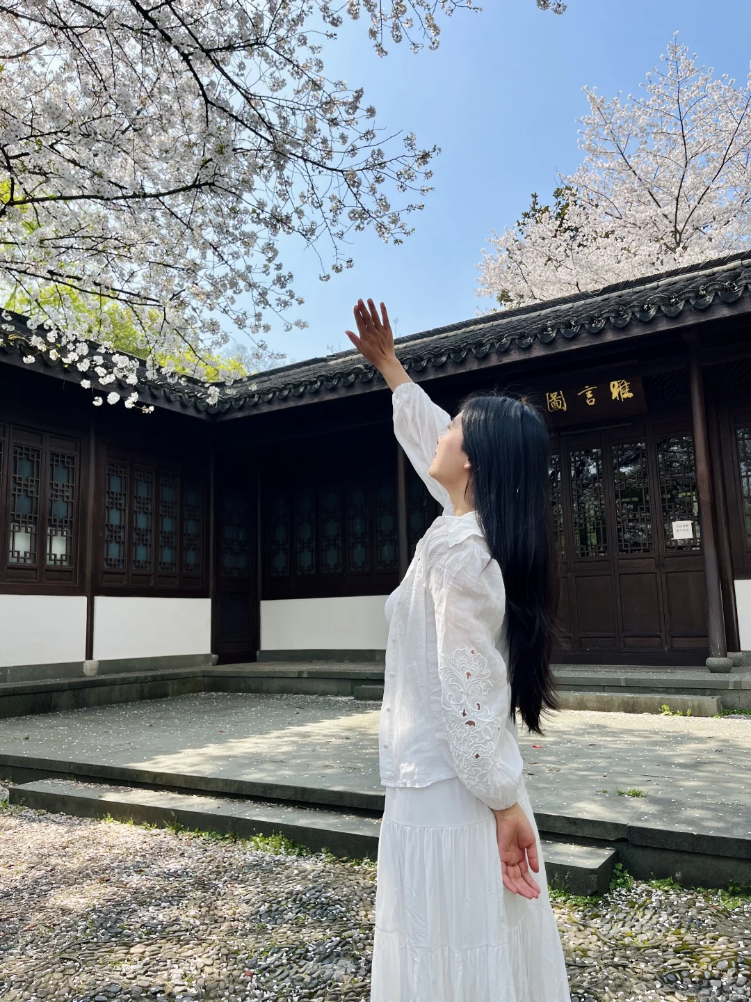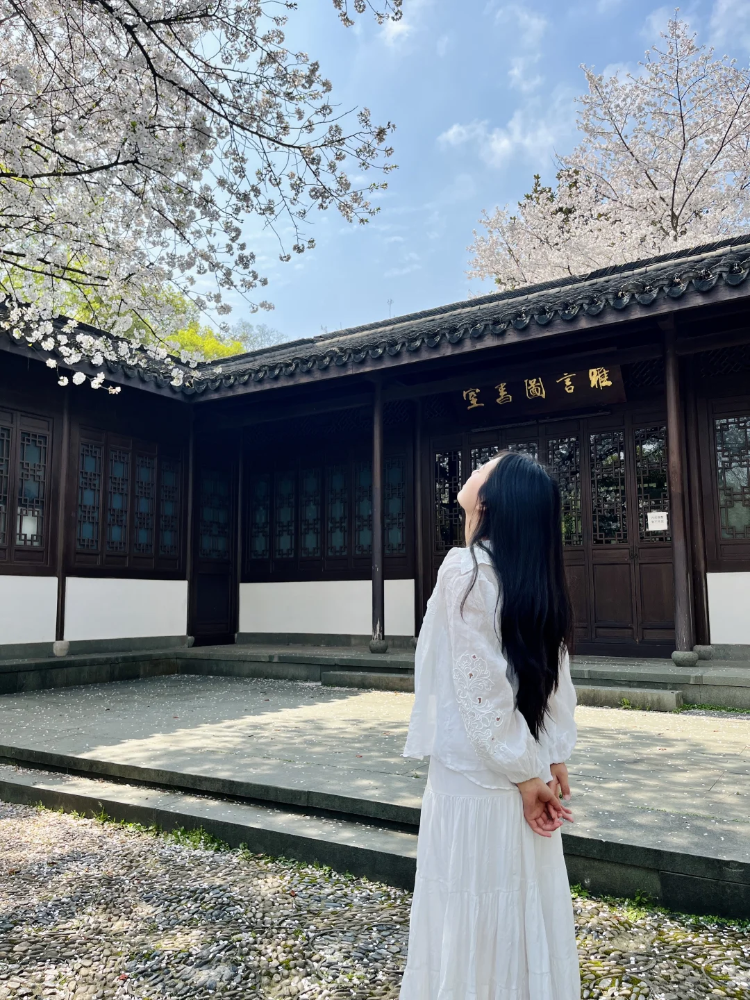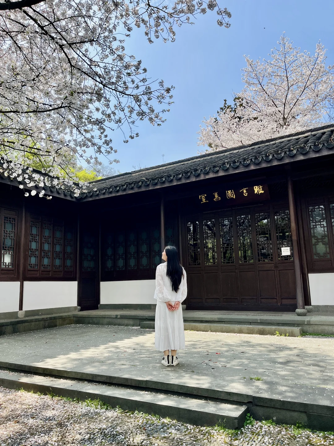 ✔️曲院风荷:杭州顶流赏樱之地,经典机位要排队,但工作日拍的人不算多。拍完往前走继续在拱桥上拍,拍到划过的乌篷船和樱花尊嘟好美