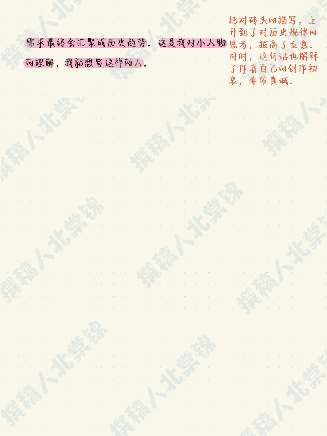 ☘这样写很接地气,有温度。因为大人物离我们太远,但普通人的喜怒哀乐是我们每个人都能共情的。而且在升华上,作者也反复使用千千万万这个词,将主题聚焦到了底层视角。