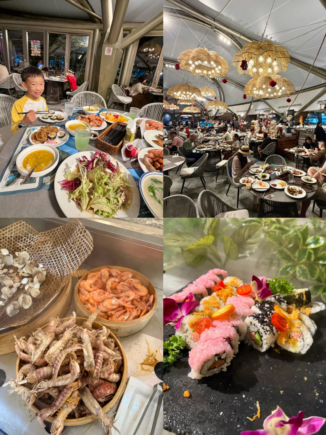 Day2:吃自助早餐➡️沙滩玩水挖沙➡️露天泳池玩水➡️银沙吧休息