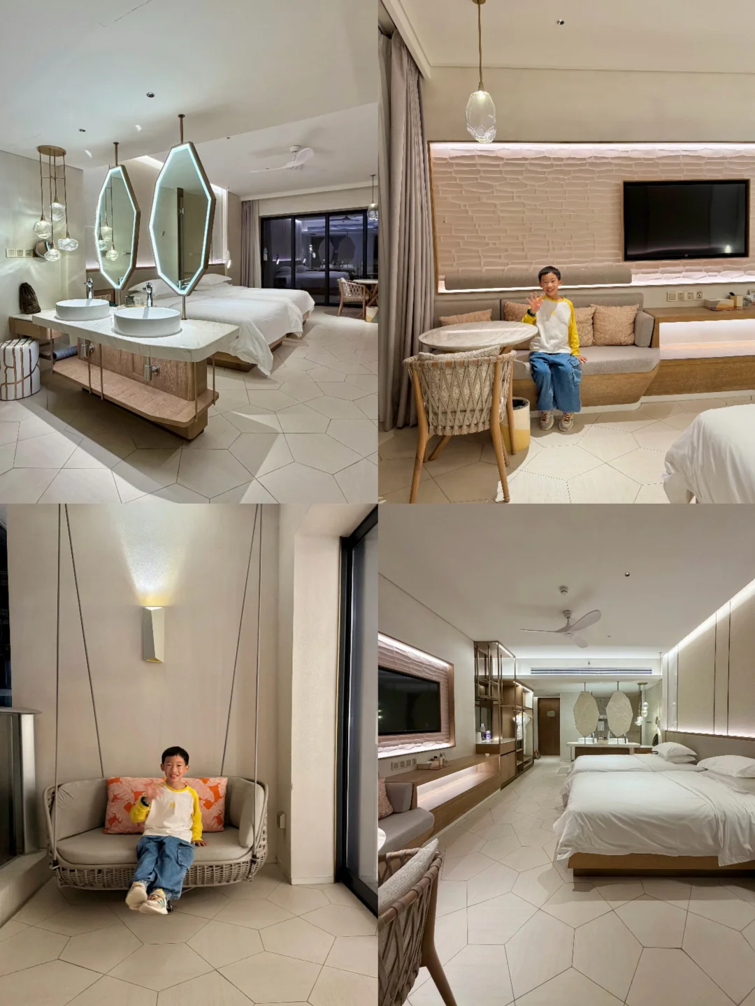 🏨住宿:我们入住的是日出·盐晶酒店酒店,房间很大,大露台就可以看到海,还有一个秋千儿子很喜欢