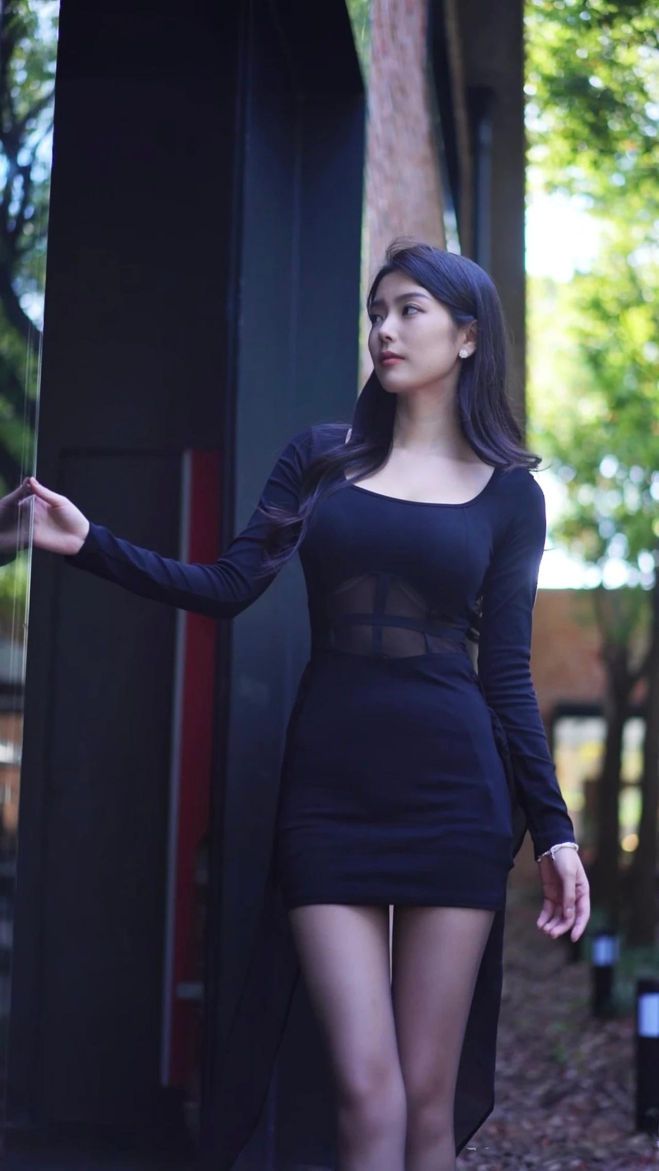 每日搭配分享·时尚穿搭长袖圆领连衣裙,展现出了女性曼妙的身姿和高挑的身材。
