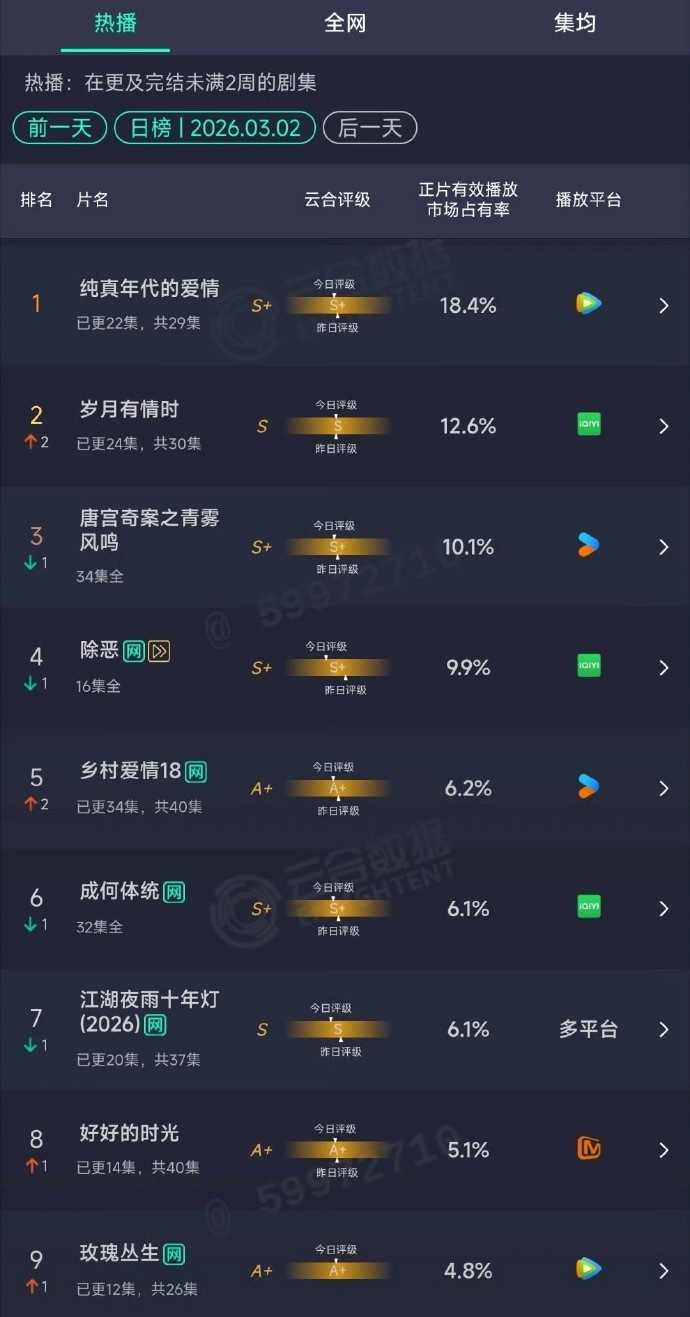 陈飞宇新剧央八暂年冠 阿瑟这波属实爽文男主了!《纯真年代的爱情》央八酷云峰值2.9%、CVB破2,酷云涨11天稳坐2026开年热剧,腾讯站内热度破28000创多项纪录,00后唯一一番央八黄金档男主这才是真掀桌,从口碑逆袭到收视热度双爆!