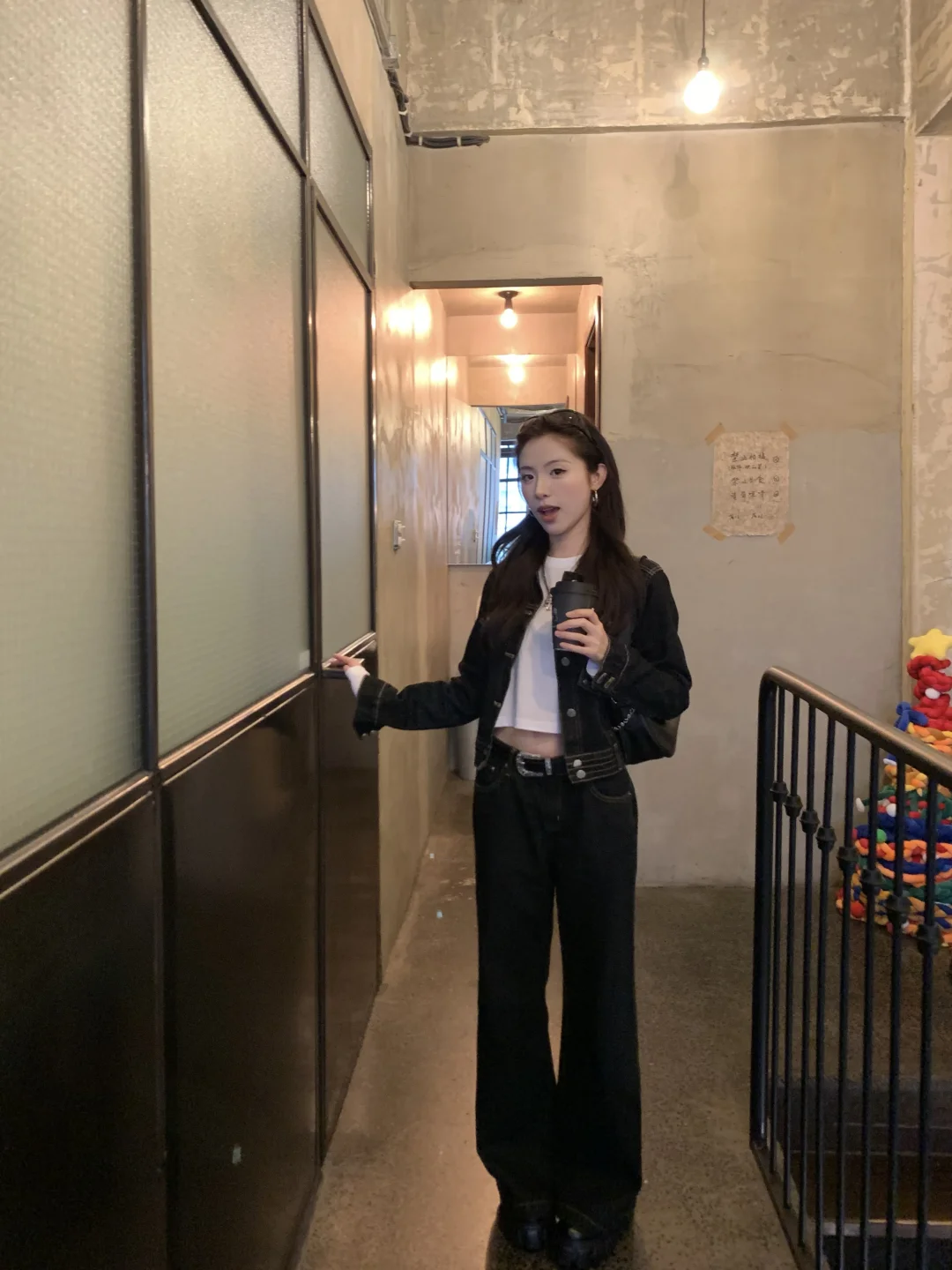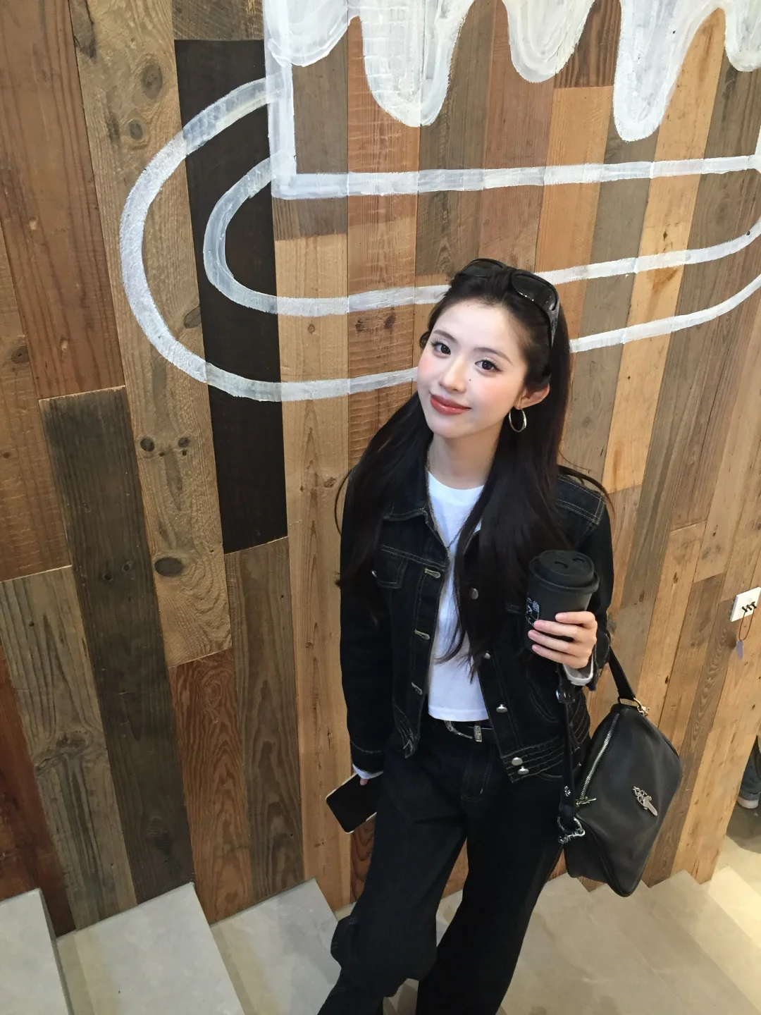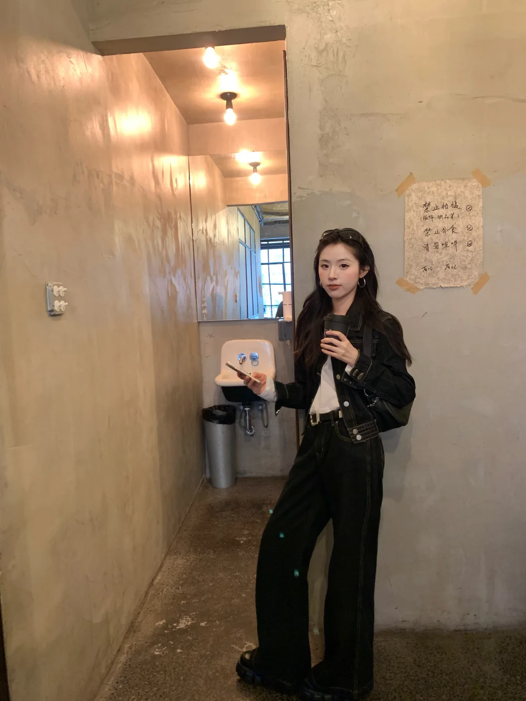 早春当然穿牛仔套装啦 很利落的一身 帅气美眉出街