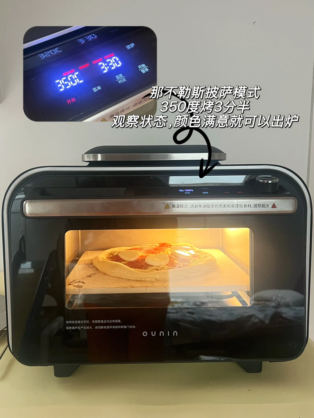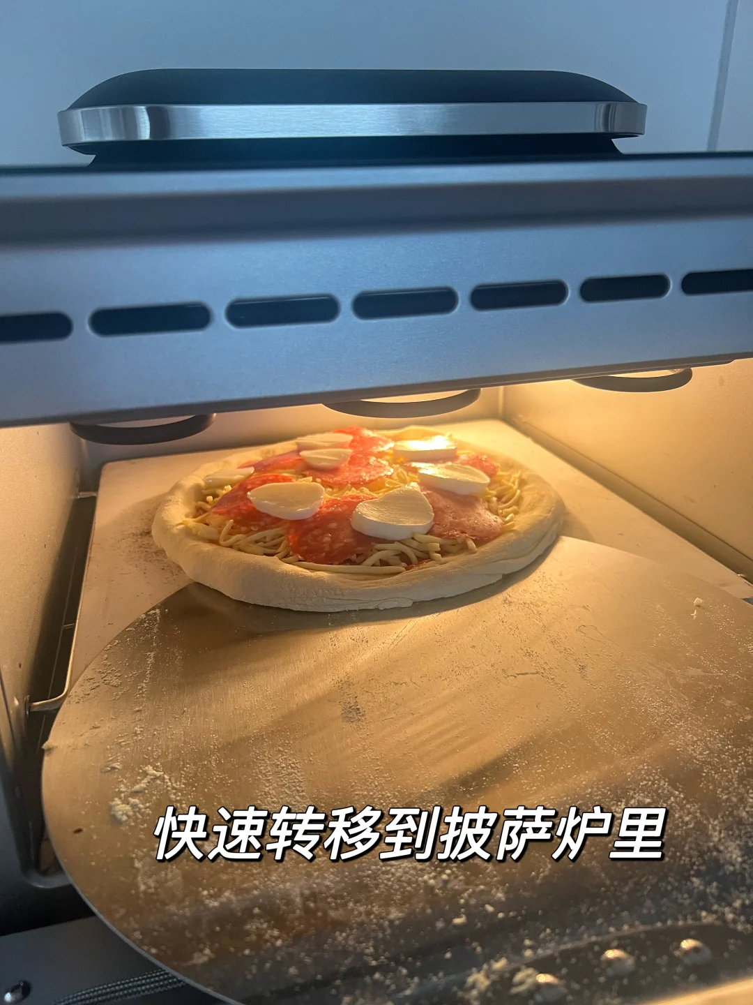 欧宁这个披萨炉预热速度好快,整理形状之前预热上,装饰完刚刚好送进烤箱~
