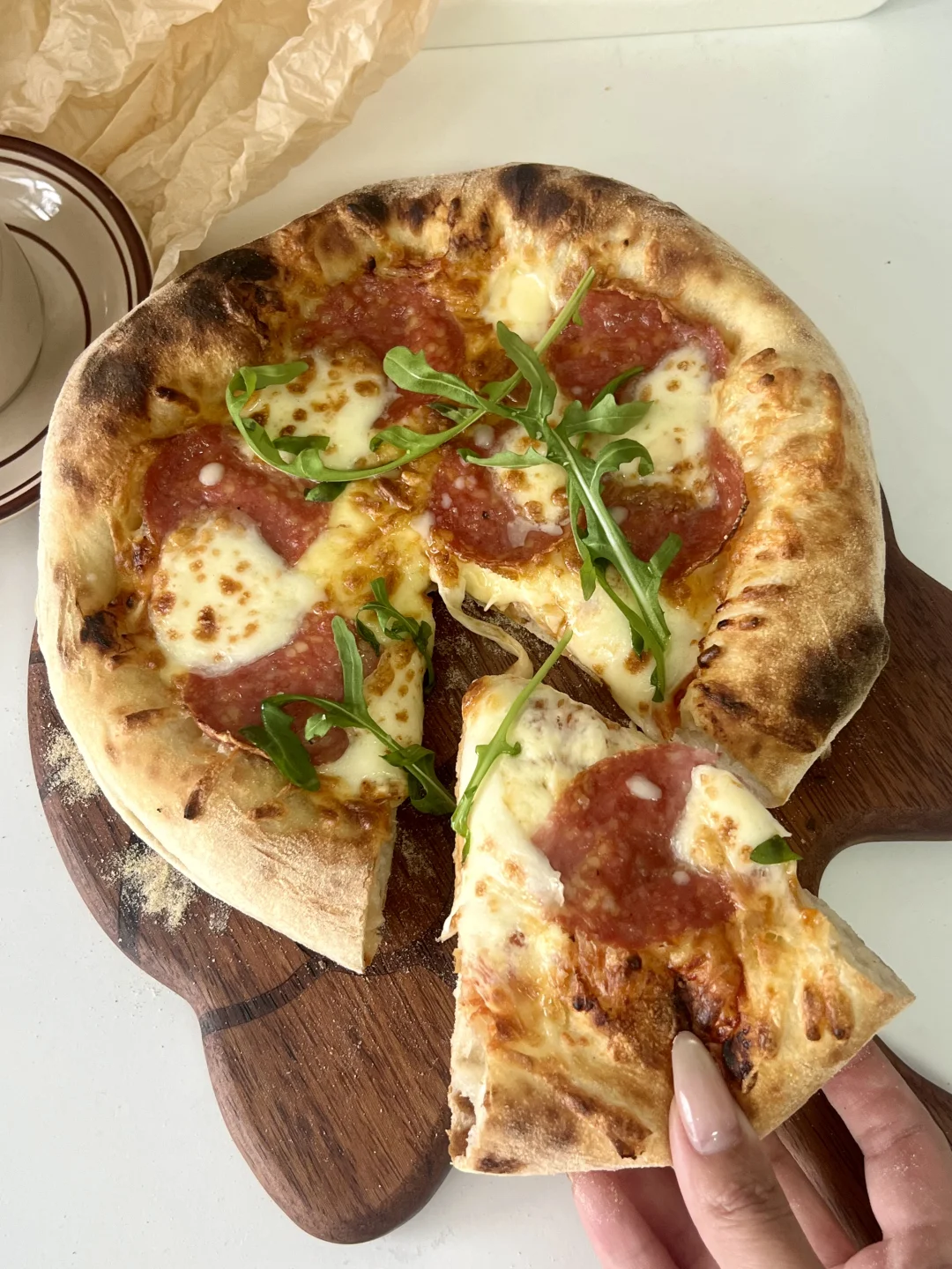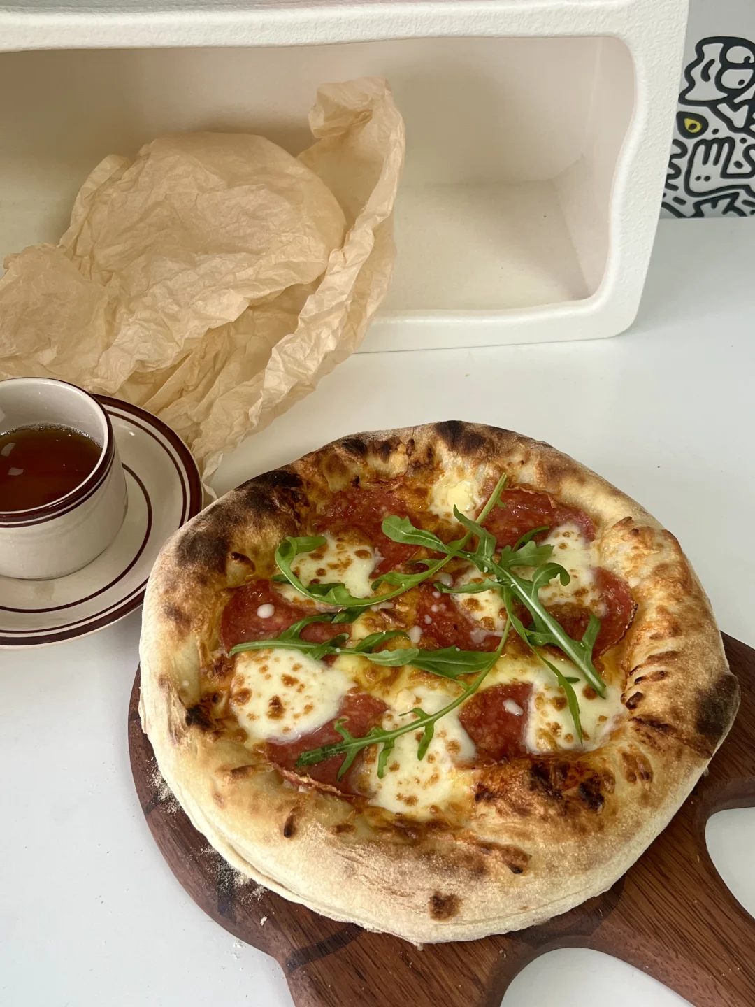 专业的披萨炉用起来不要太爽,三分钟披萨就出炉了,高温快烤出来边边是超完美的大气孔!太好吃噜