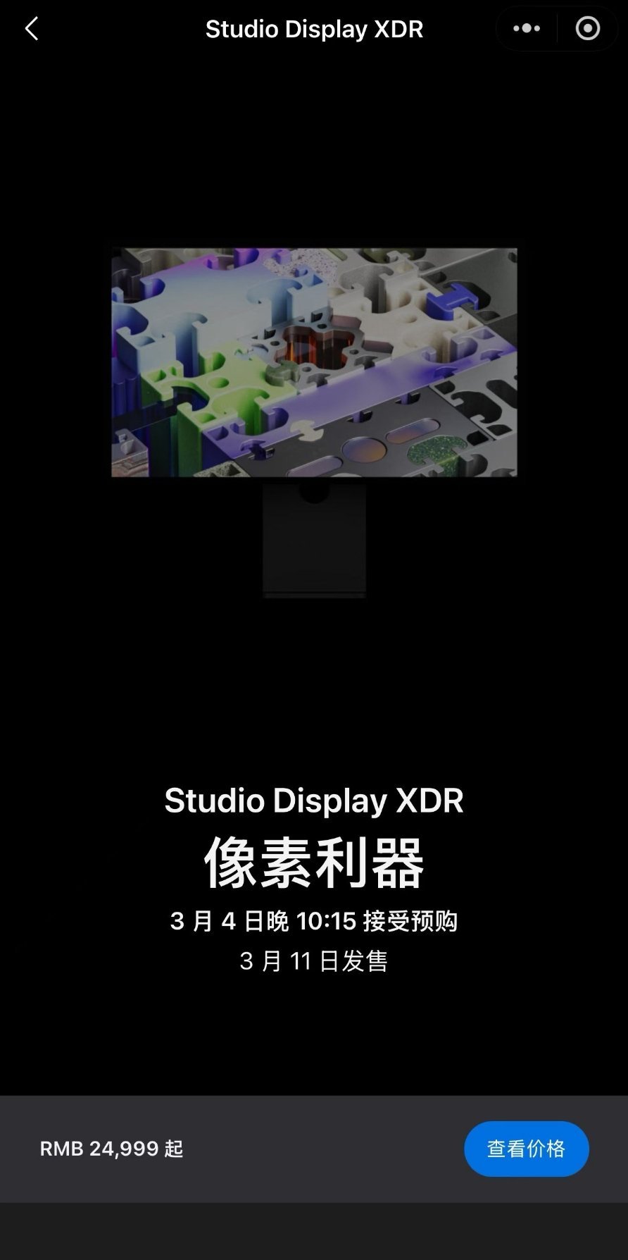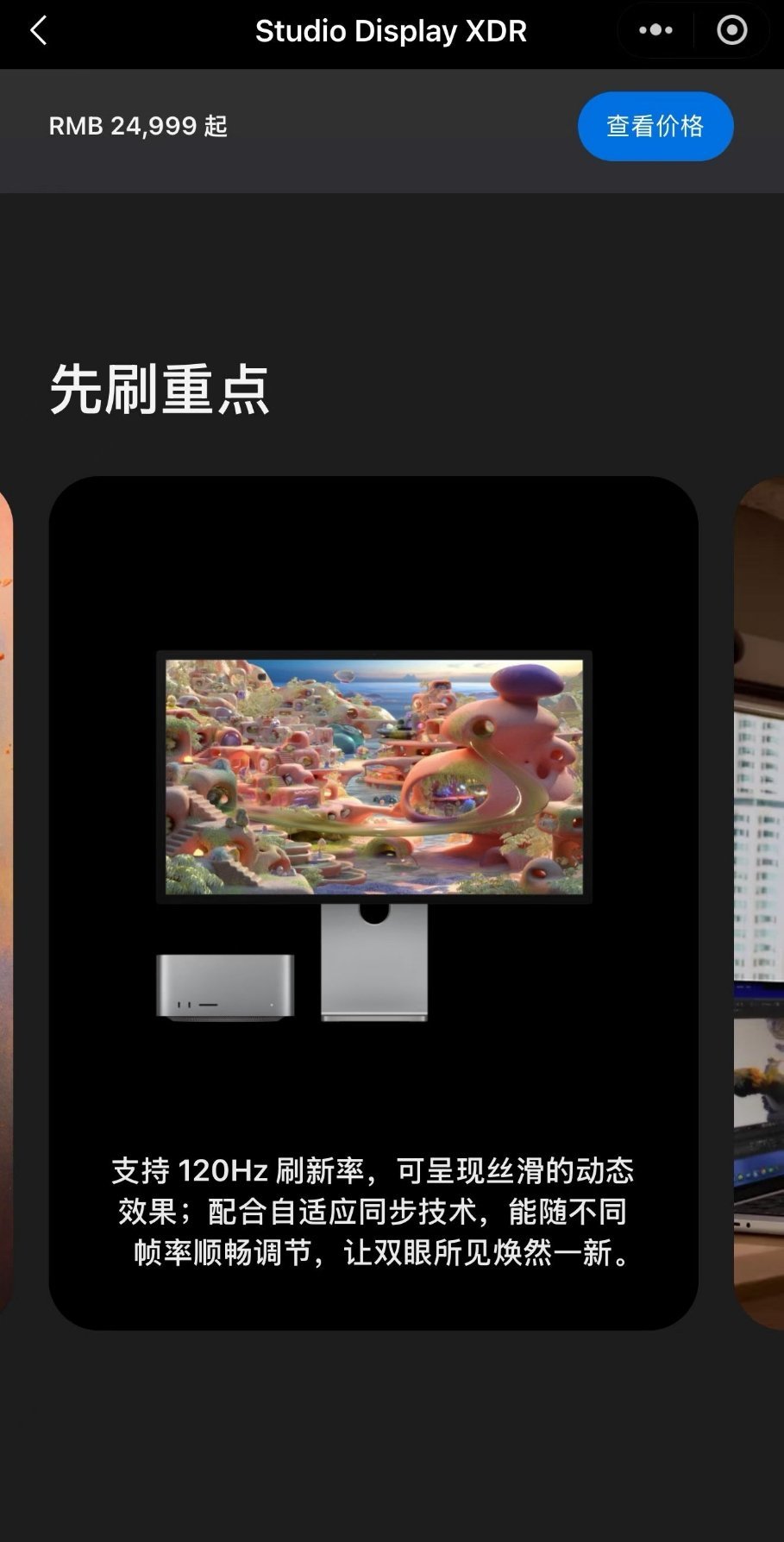 苹果发布会 Studio DisPlay也有两款产品上新,比较给力的是前面这款Studio DisPlay XDR,但24999元起