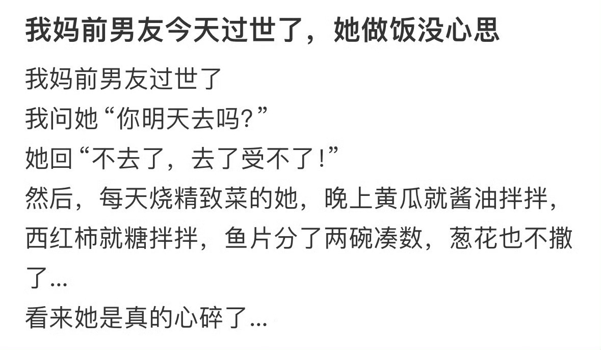 我表姐今年47岁,月薪5000元,离婚8年,昨天听到前夫突然去世了,她嚎啕大哭。