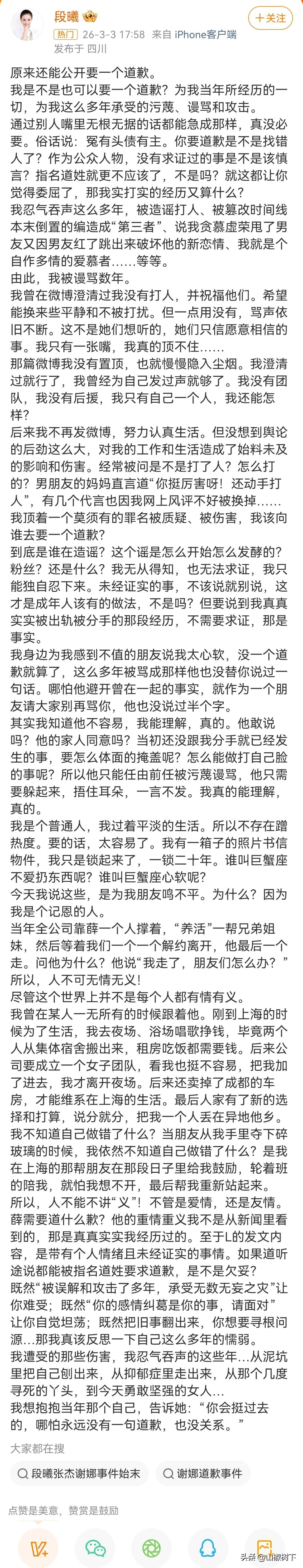 张杰啊张杰,前女友都发文捶你,说你出轨了,你为什么不反击呢?如果没出轨就拿出证据来啊,既然你说跟谢娜在一起的时候是单身,那就把证据晒出来来,这不就一目了然了吗? 你倒好,现在该讲证据的时候你发文说要用作品说话,这是心虚还是咋滴,本来这事跟你们两口子也没关系,非得跳出来喊话,这回好了吧,吃瓜吃到自己头上了[笑哭][笑哭]