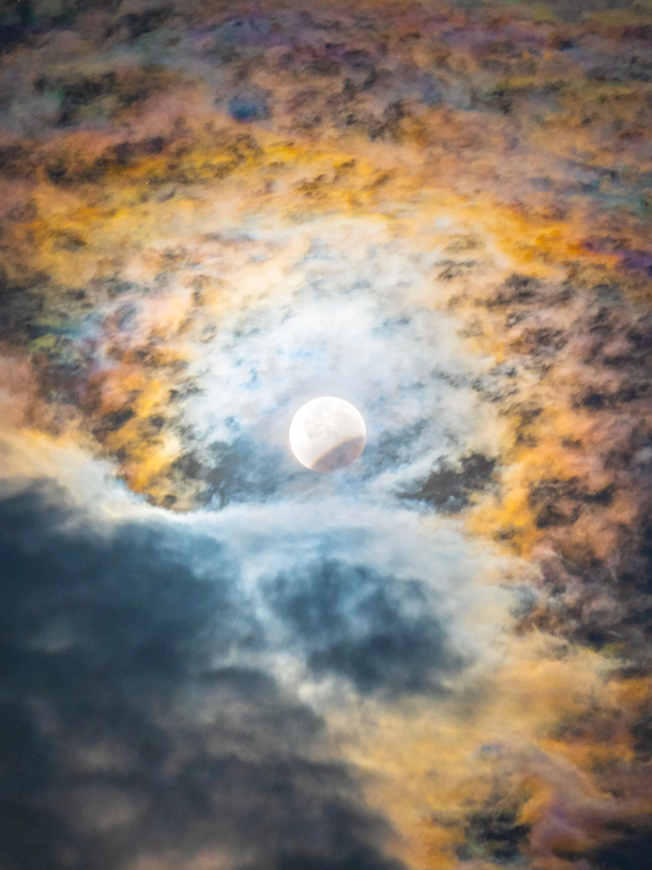 天狗食月遇上七彩祥云。