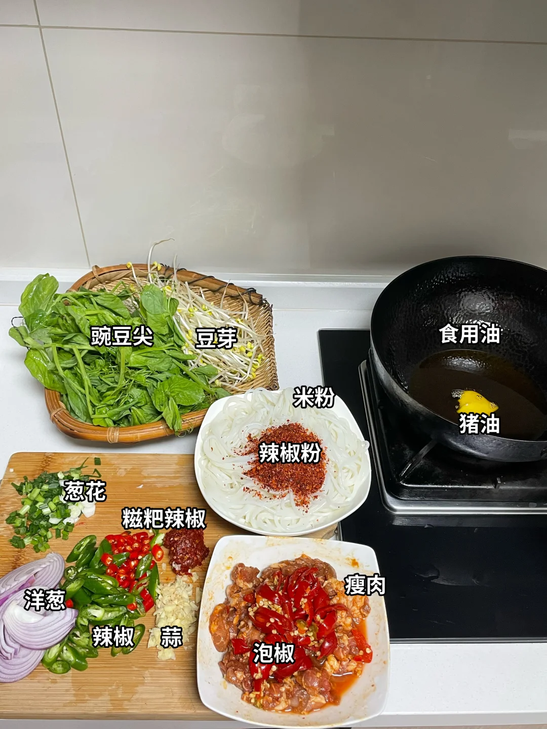 🌶️食材:米粉,瘦肉,豆芽,豌豆尖